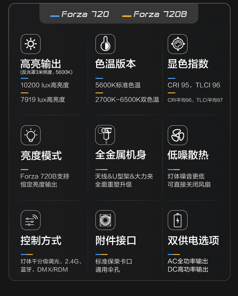 光源の色 フォーザ720公式標準装備 (単色温度),フォーザ720B公式標準装備 (2色温度),Forza 720 120柔光箱 (卵格) 3000Fランプホルダー,フォーザ720 120ソフトライトボール3000Fライトスタンド,フォーザ720B 120柔光ボックス (エッグ) 3000Fライトスタンド,フォーザ720B 120ソフトライトボール3000Fライトスタンド,フォーザ720 36度保栄イメージングレンズ3000Fライトスタンド,フォーザ720B 36度保栄イメージングレンズ3000Fライトスタンド