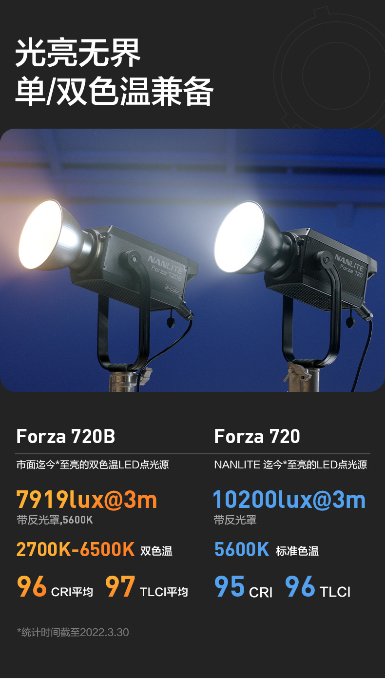 鴻図Nanlite南光forza 720/720B 2色温度撮影ランプled常時点灯大電力補助ランプ