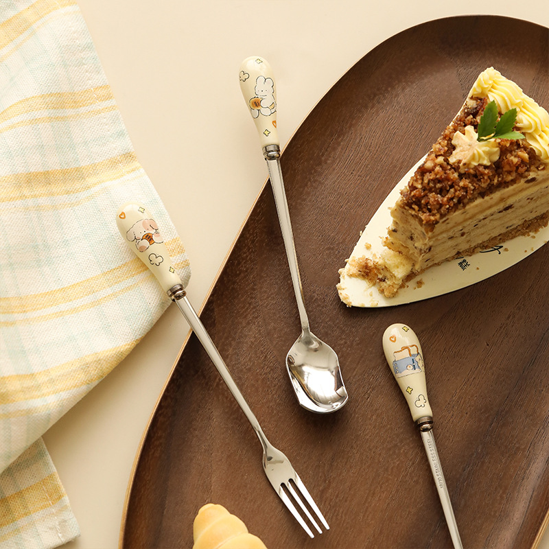 漫画ステンレススプーン家庭用セラミック柄デザートスプーン果物フォーククリエイティブスプーンかわいい