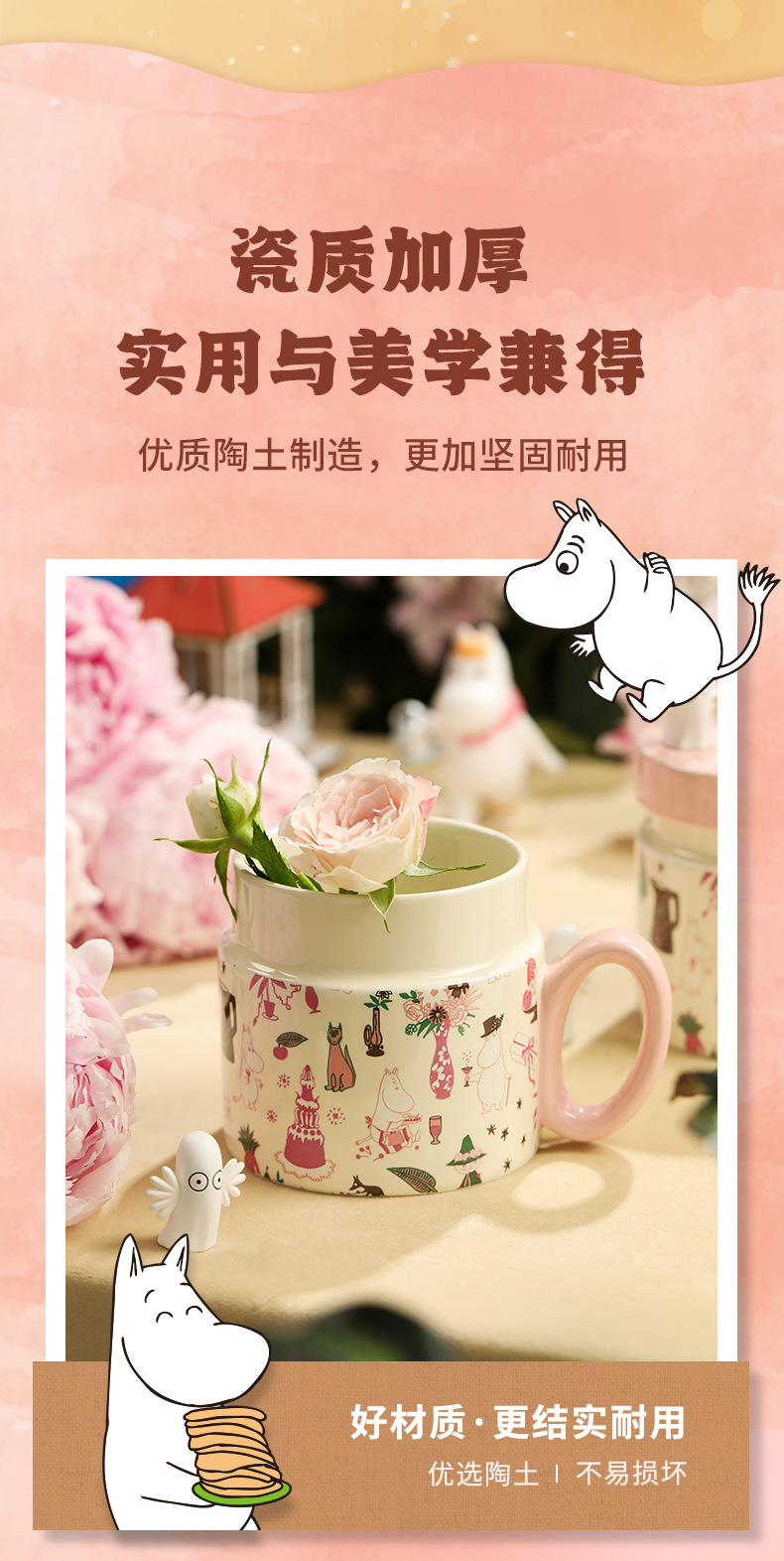 Mominムーミンピンクパーティーフラワーカップセラミックマグカップ高颜値诞生日プレゼントティーカップ