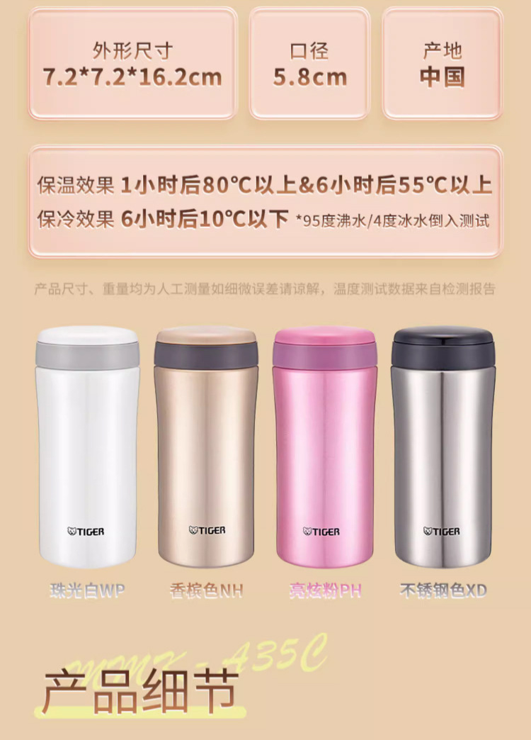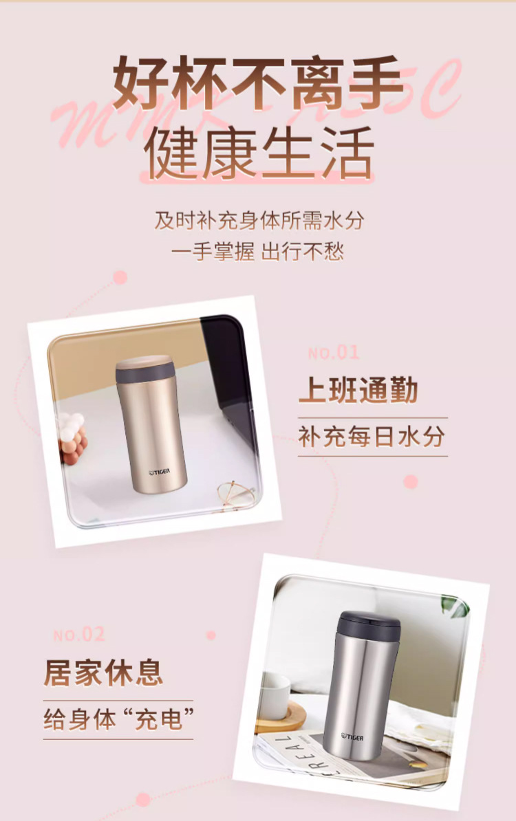 TIGER/虎牌保温カップMOC-A30C軽量小容量真空日本式小清新女コップ300ml