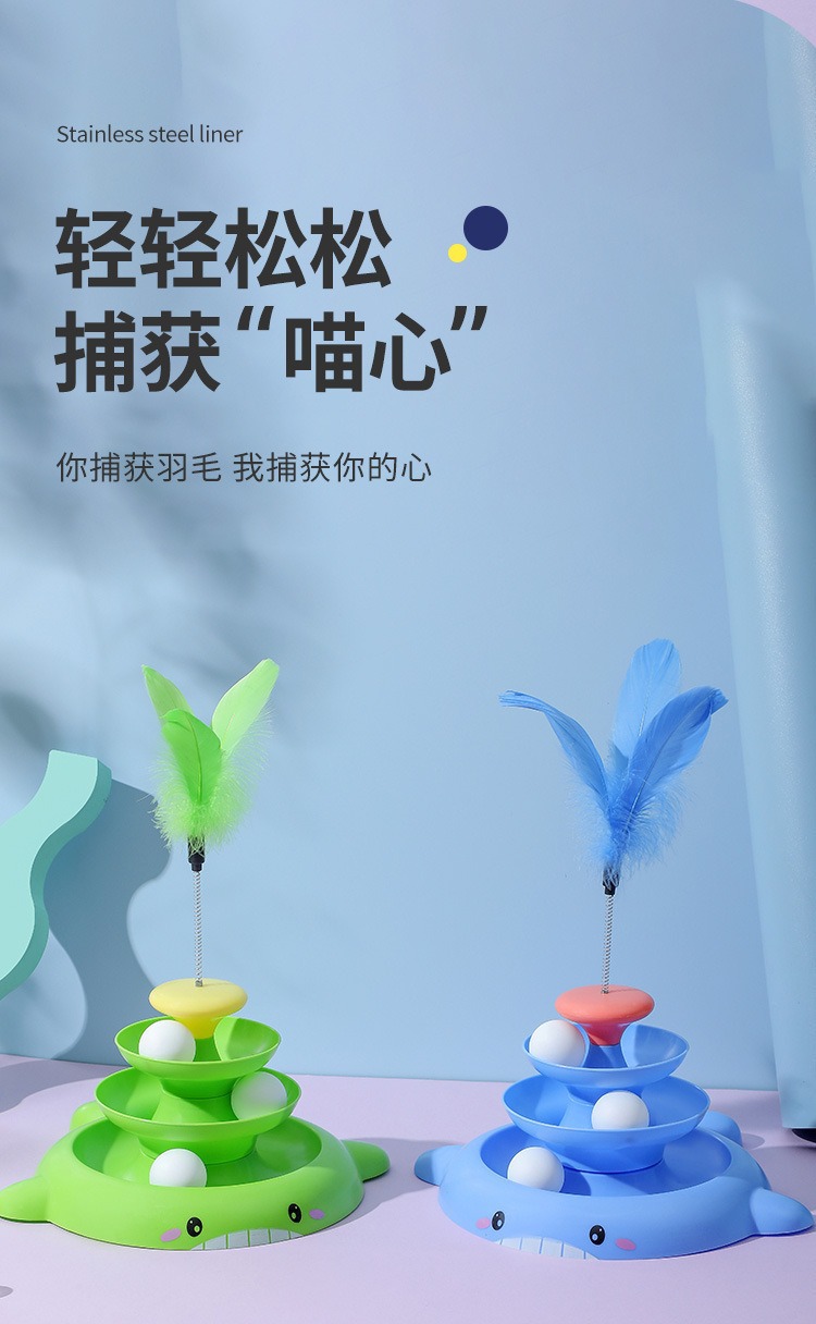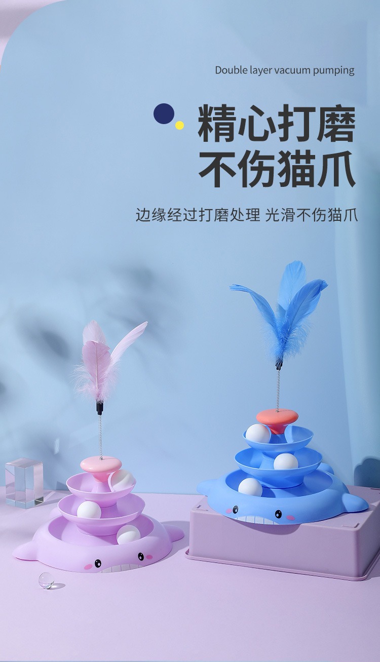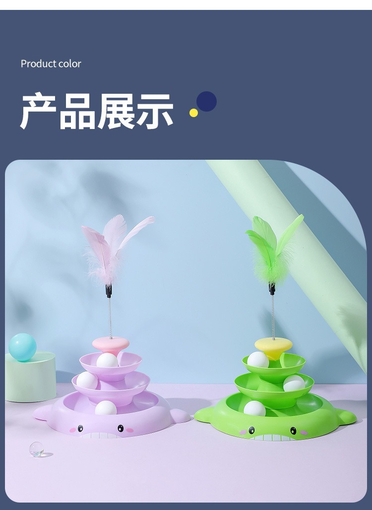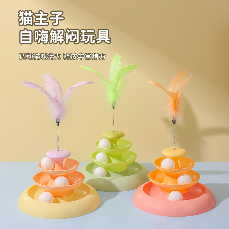 猫用回転盤、猫じゃらし、4層猫用遊具、猫用おもちゃ、カラフルな羽根付き、退屈解消グッズ、ペット猫用