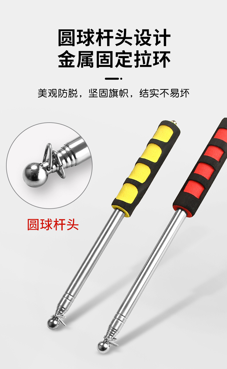 ガイドフラッグポール 2m ハンドヘルド格納式ポータブル屋外ステンレス鋼旗収縮 3m ポインター 1.25m