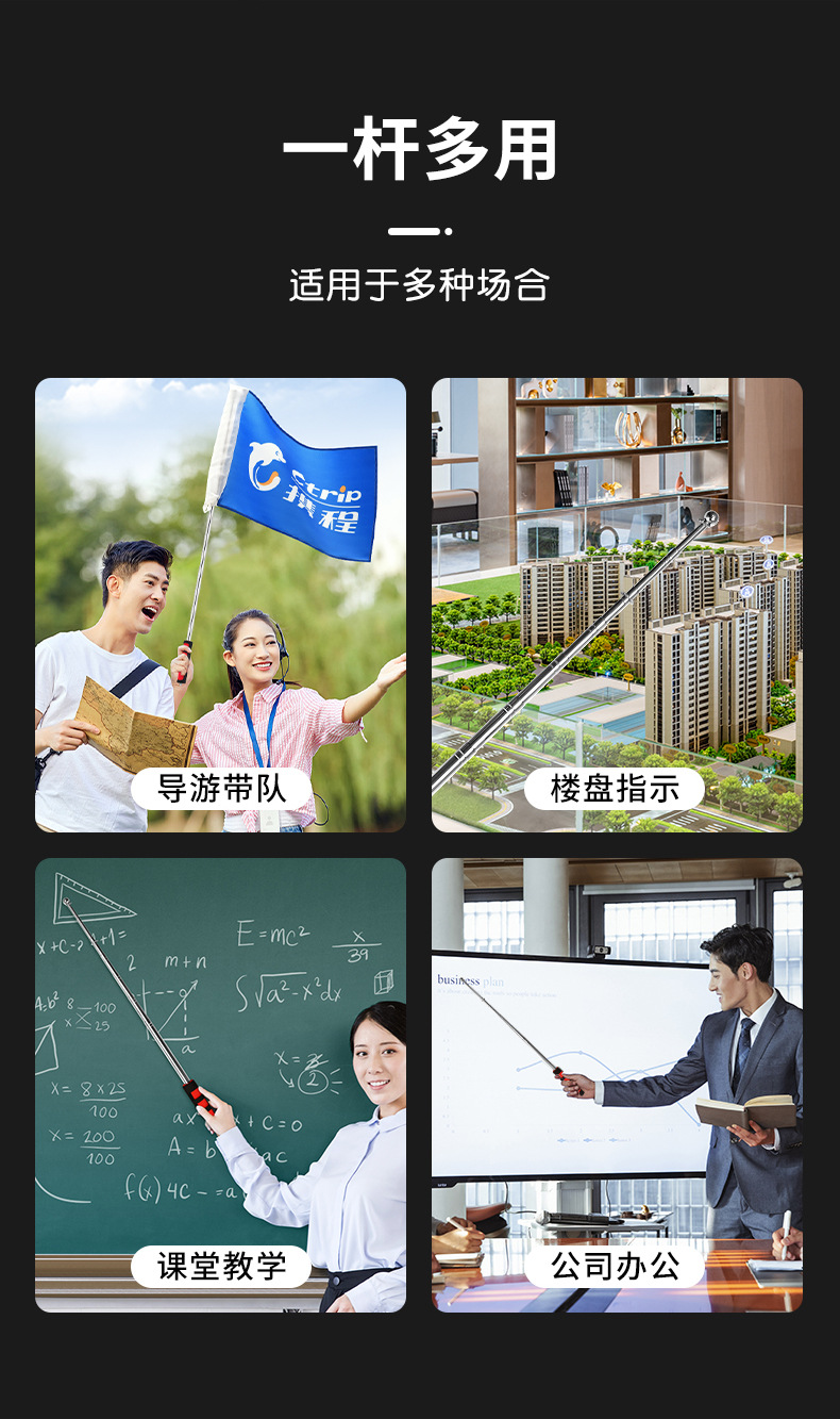 ガイド用旗竿、ステンレス製伸縮式旗竿、手回し式旗竿、伸縮式教鞭、黒色伸縮式カフス、安徽省工場