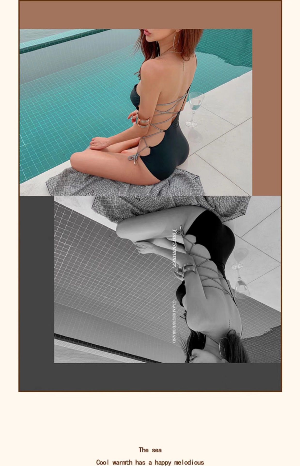 昔の知り合い-W短調連体セクシーな純欲風が腹を覆ってやせている三角露背水着の女性水着の新型