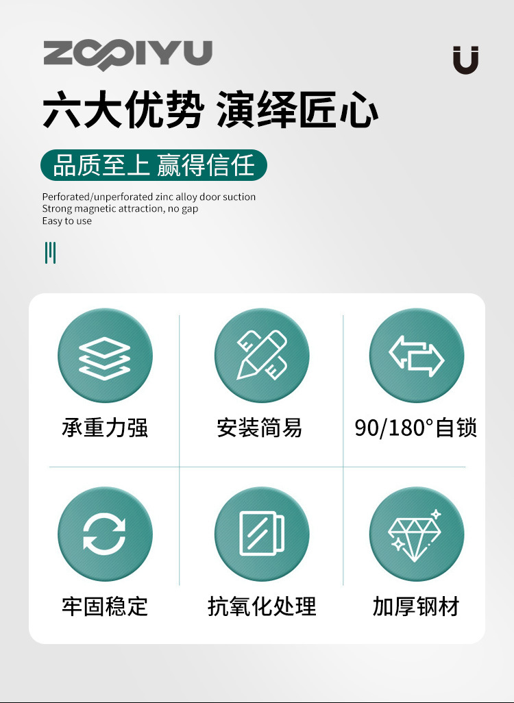 ドア吸引新型穴を開けない家庭用の強い磁気ドアがシリコンの寝室のドアに触れて静かなトイレの室内で衝突を防ぐ