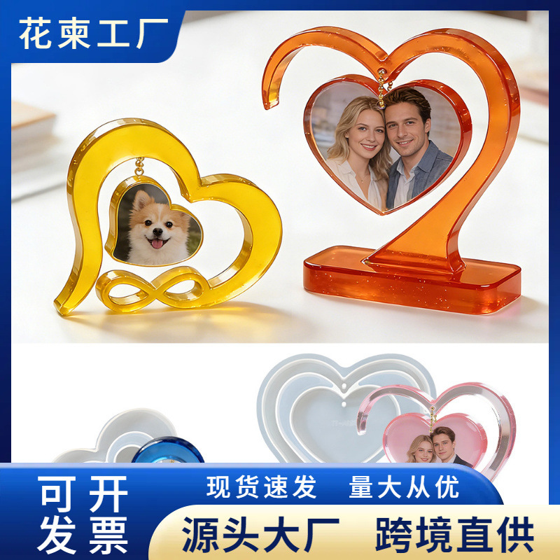 跨境小爱心相框装饰滴胶模具diy拼插爱心相框摆件香薰石膏模具