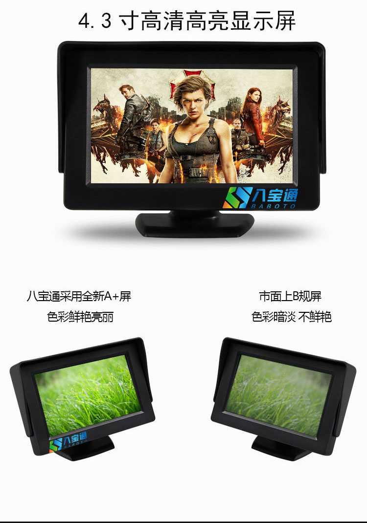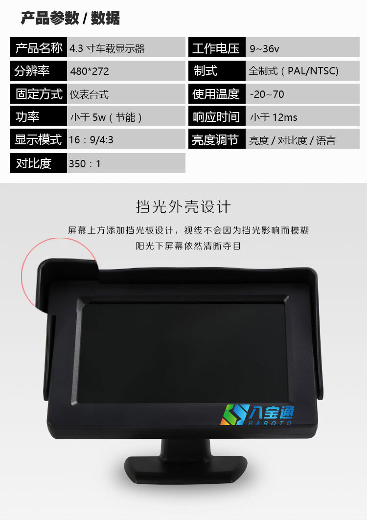 4.3インチ車載ディスプレイ自動車DVD小型ディスプレイhdビデオテレビセットトップボックストラックバック映像