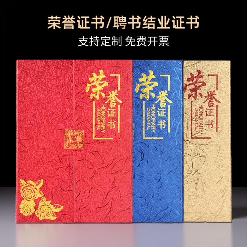 现货批发烫金花纹奥利丝特种纸三折荣誉证书聘书附赠内页更换logo