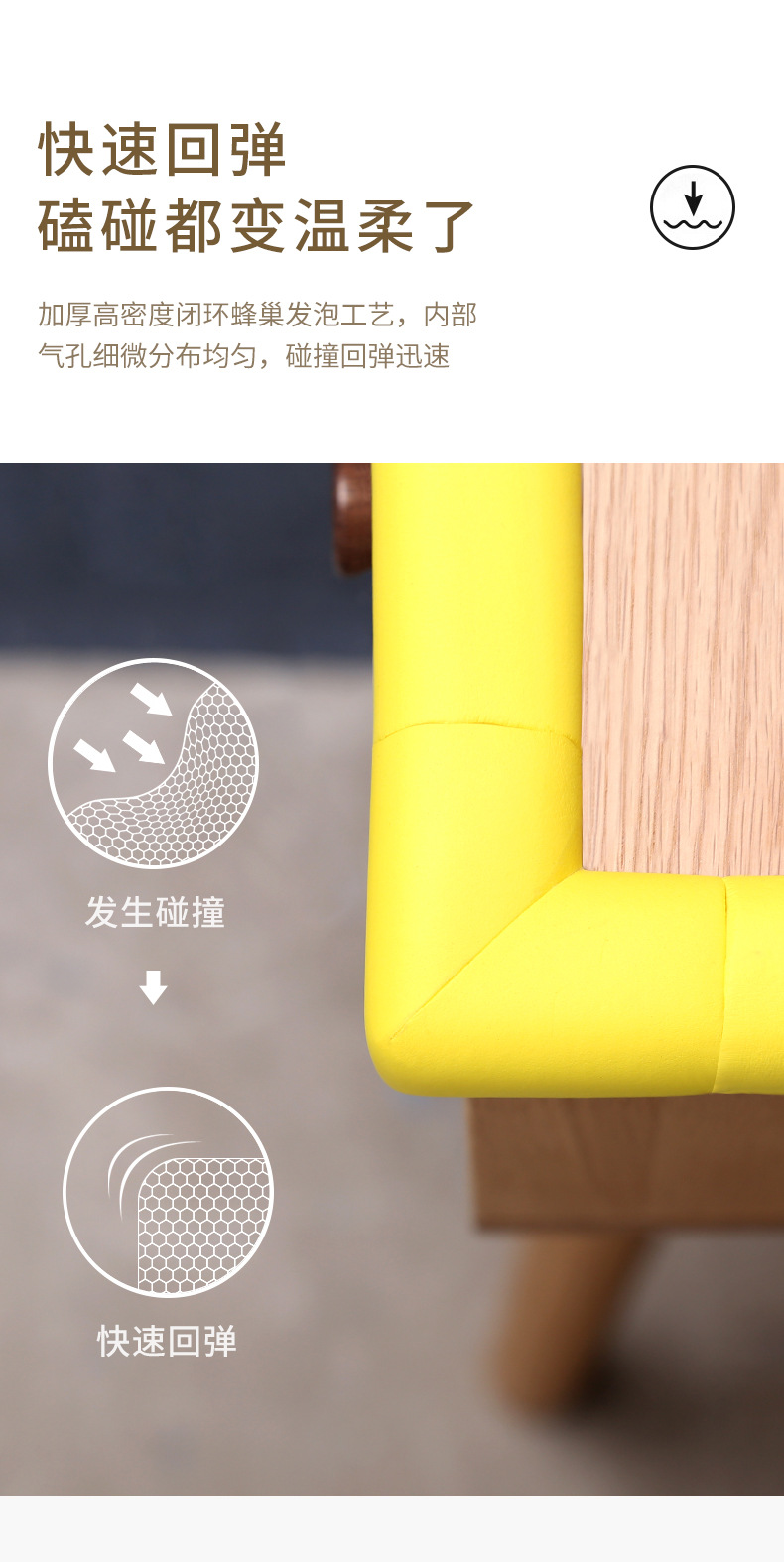 衝突防止角を貼ることなく緩衝コーナーのテーブルの角を保護します。