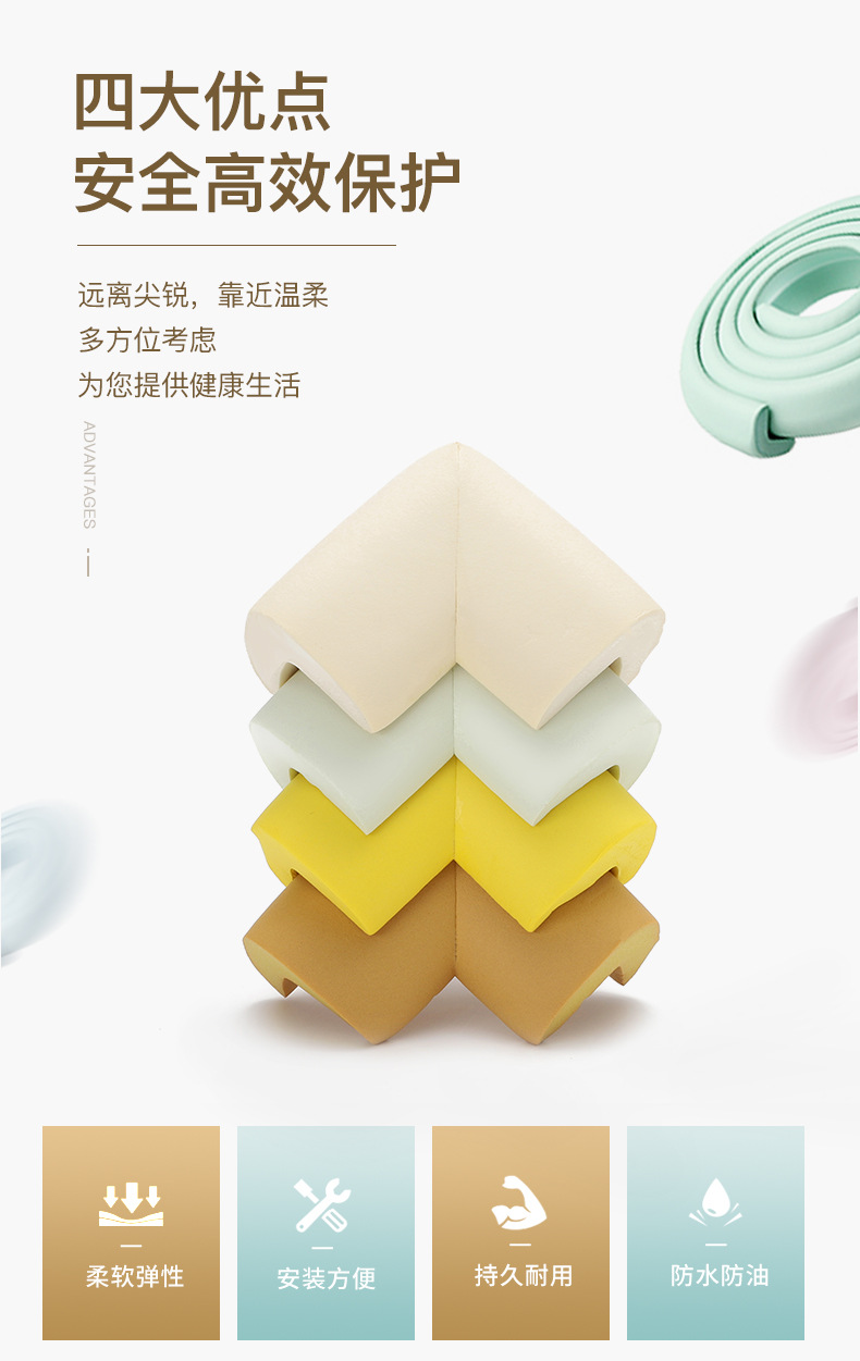 子供用衝突防止ストリップ 寮の階段用フットパッド 衝突緩衝 ガラスのテーブルの端や壁の角用 ソフトパッド 粘着剤不要 厚手