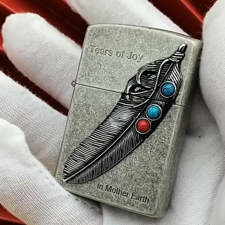 佐罗煤油打火机Z9667C松石羽毛个性贴章复古老式砂轮火机批发代发