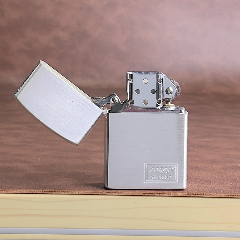 ゾロ(ZORRO) 灯油ライター サンドクローム光沢プレート ブラインドボックス 微細マット仕上げ ホワイトブラス製 オールドスタイル レトロ 防風