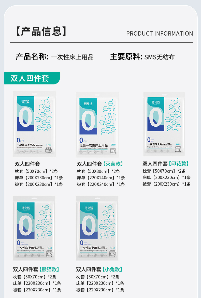 使い捨てベッドシーツ,使い捨て掛け布団カバー,使い捨て枕カバー,使い捨てダブル4点セット,使い捨て1人用3点セット,スリーピーススリーピングセット,使い捨てダブル4点セット漫画スタイル,使い捨てシングル3点セット プリントスタイル,使い捨てダブル4点セット 抗菌スタイル,使い捨て1人用3点セット 抗菌モデル