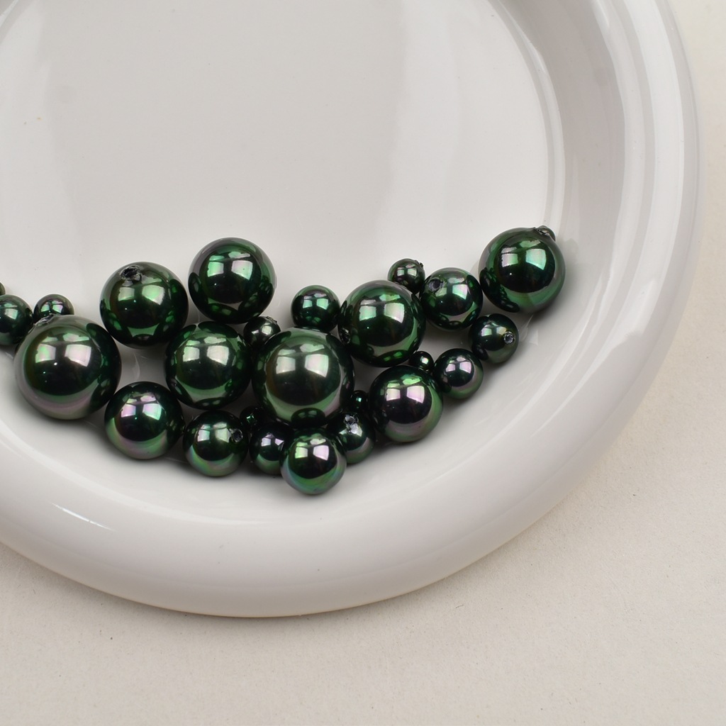 4-14mm半孔孔雀绿仿珍珠玻璃珍珠耳饰DIY单孔散珠吊坠配件批发