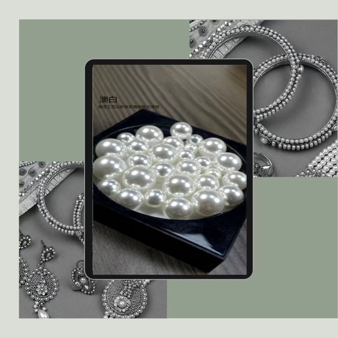 澳白半孔仿珍珠水晶玻璃珠串珠散珠珠子项链耳钉耳饰diy饰品配件