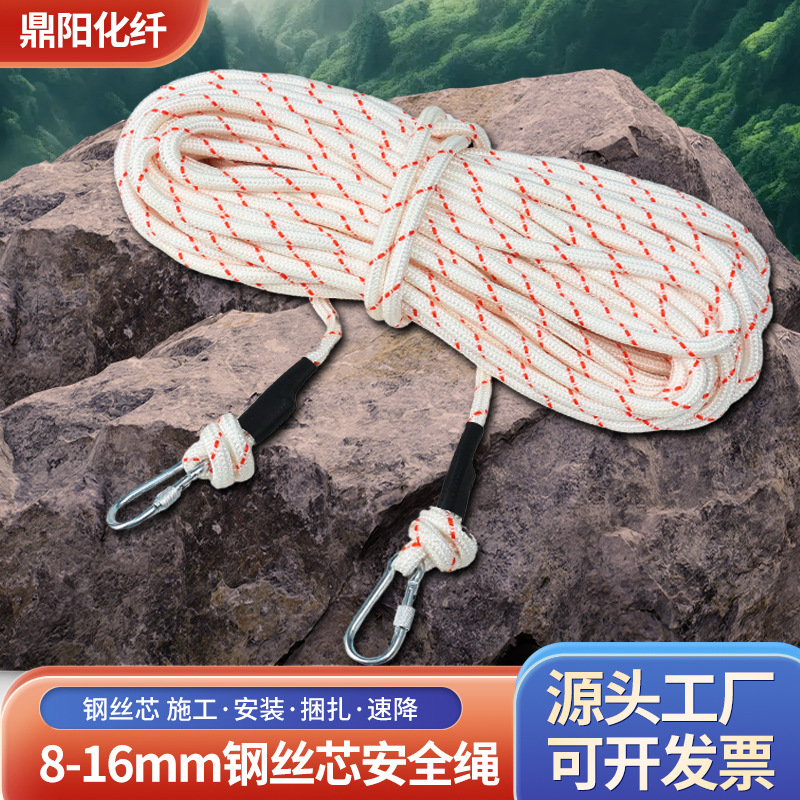 安全ロープ8-16mm鋼線芯安全ロープ取付結束速降下ロープナイロンロープ緊急消防ロープ