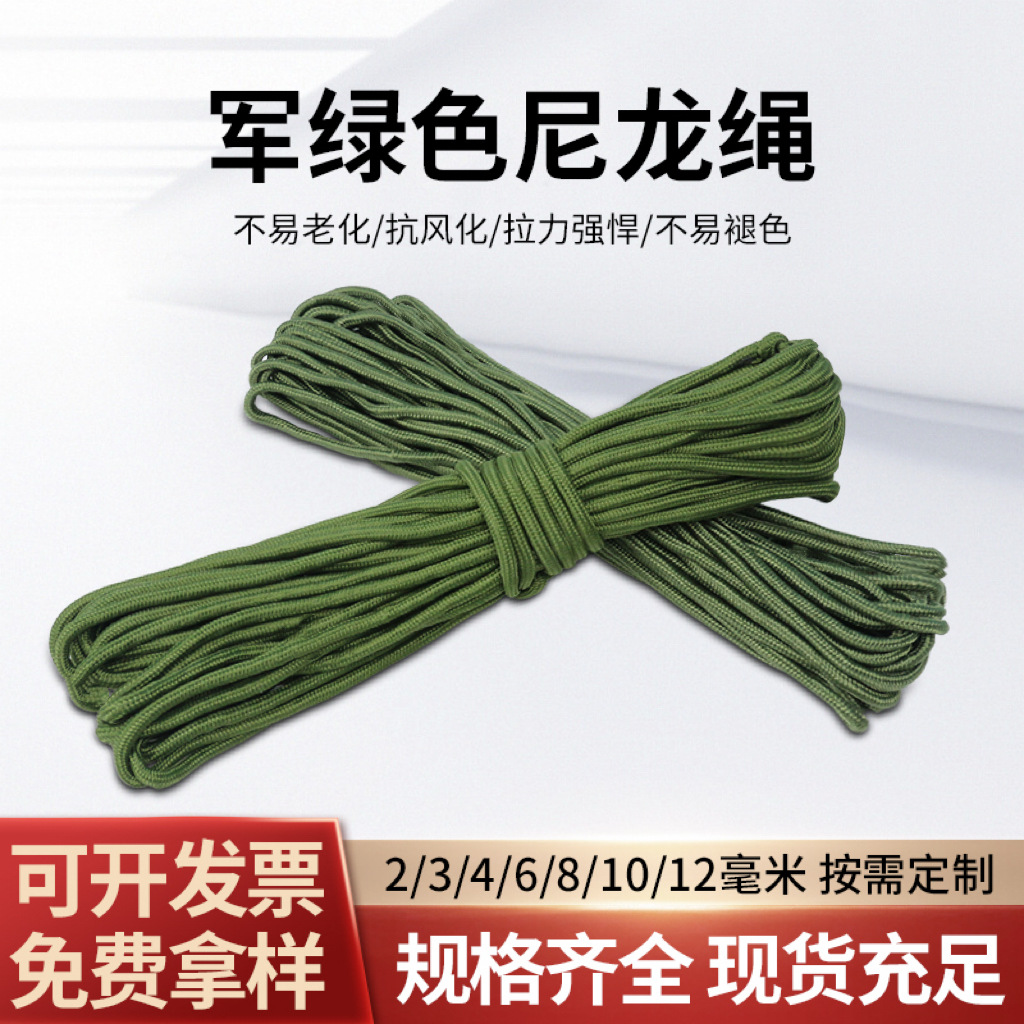 军绿色耐磨尼龙绳 编织绳绳子捆绑绳子篷布刹车广告绳拉绑绳