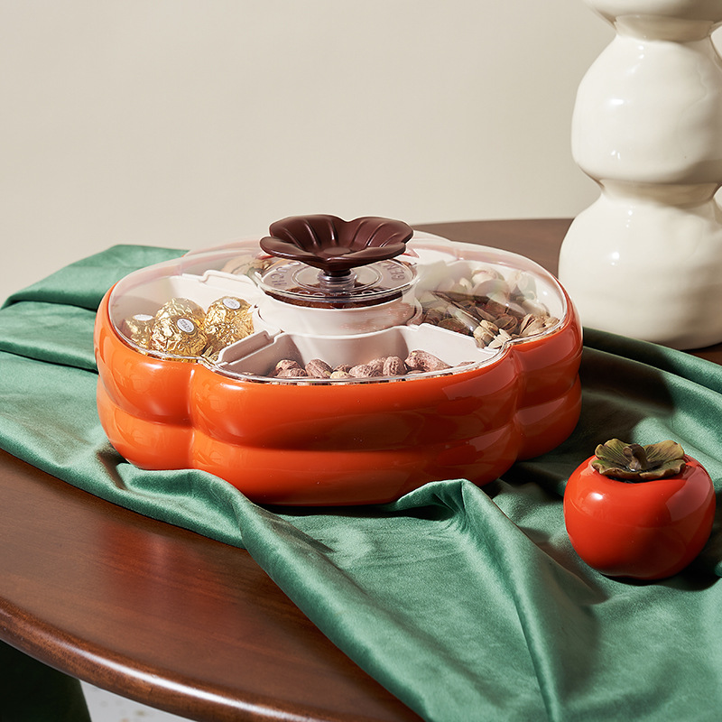 柿柿如意家用大容量四分格带盖果盘不串味可拆卸加厚创意风零食盒