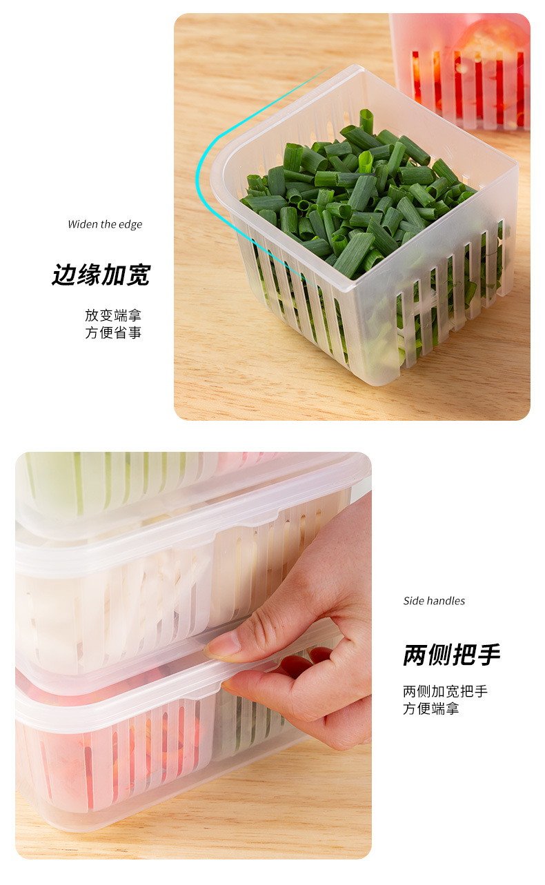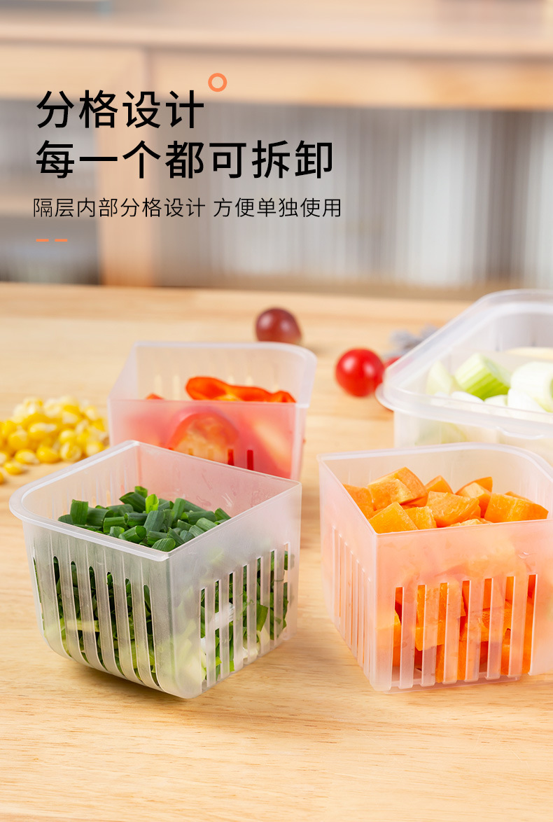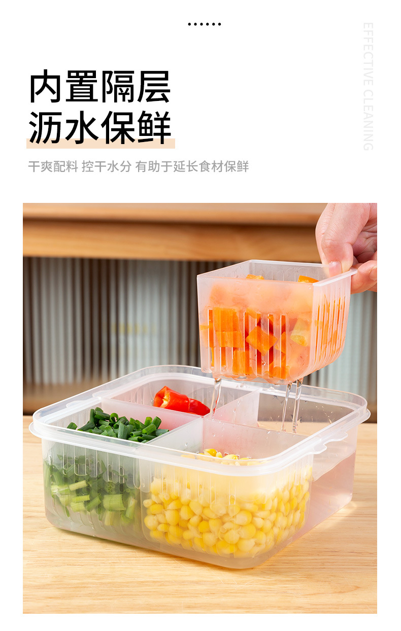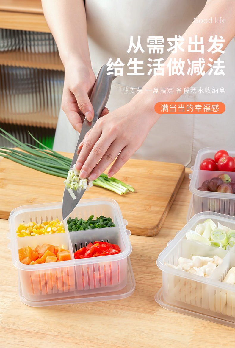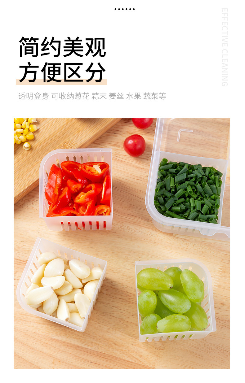 透明蓋付き四格葱花箱キッチン二重分滴水箱冷蔵庫冷蔵新鮮保持食品収納箱