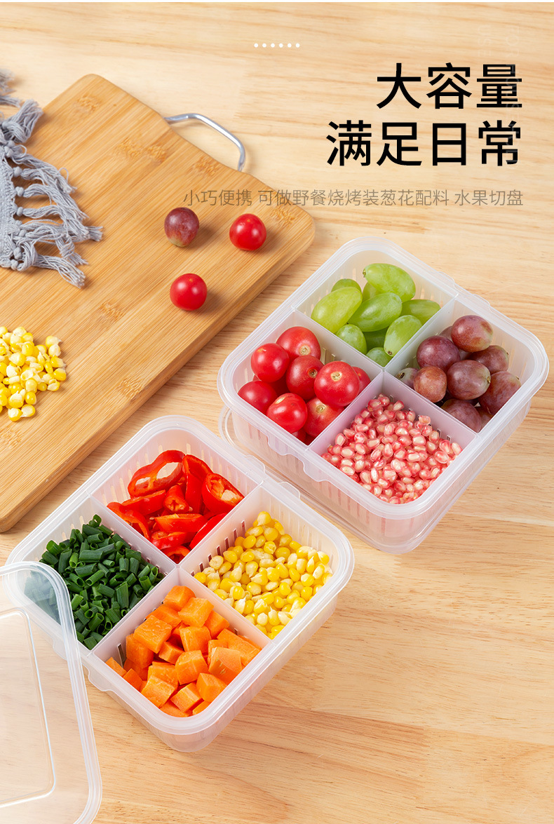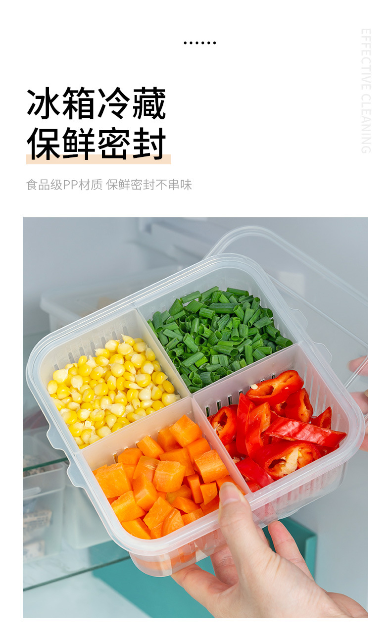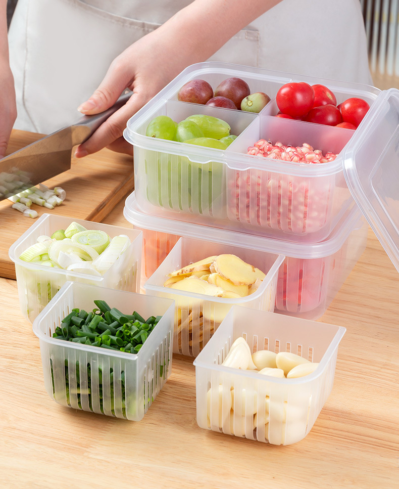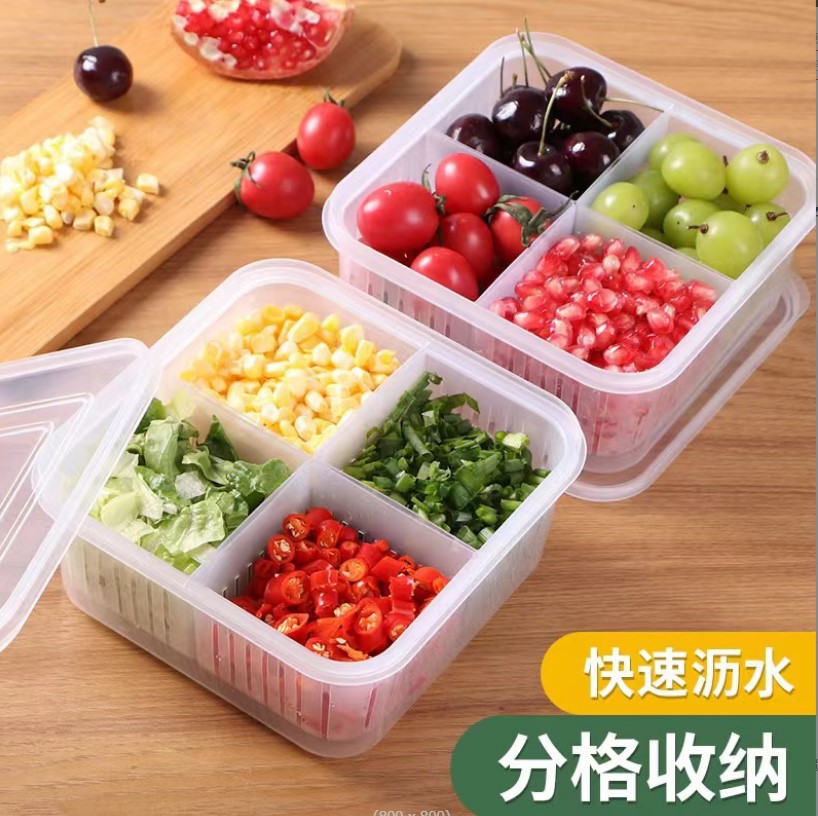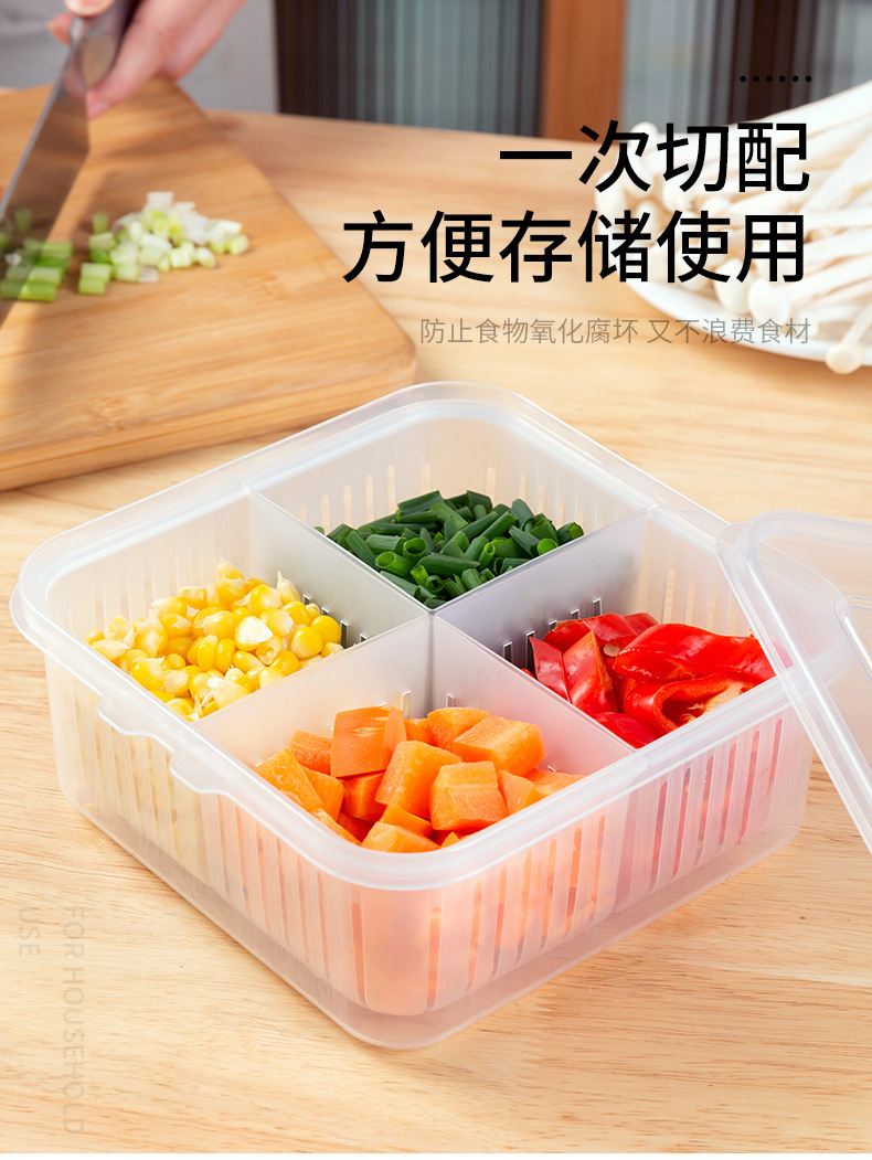透明蓋付き四格葱花箱キッチン二重分滴水箱冷蔵庫冷蔵新鮮保持食品収納箱