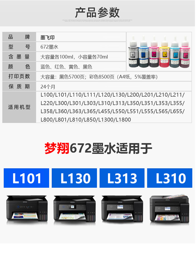互換エプソン672インクEpson L101 L111 L130 L211 L220 L301プリンタ