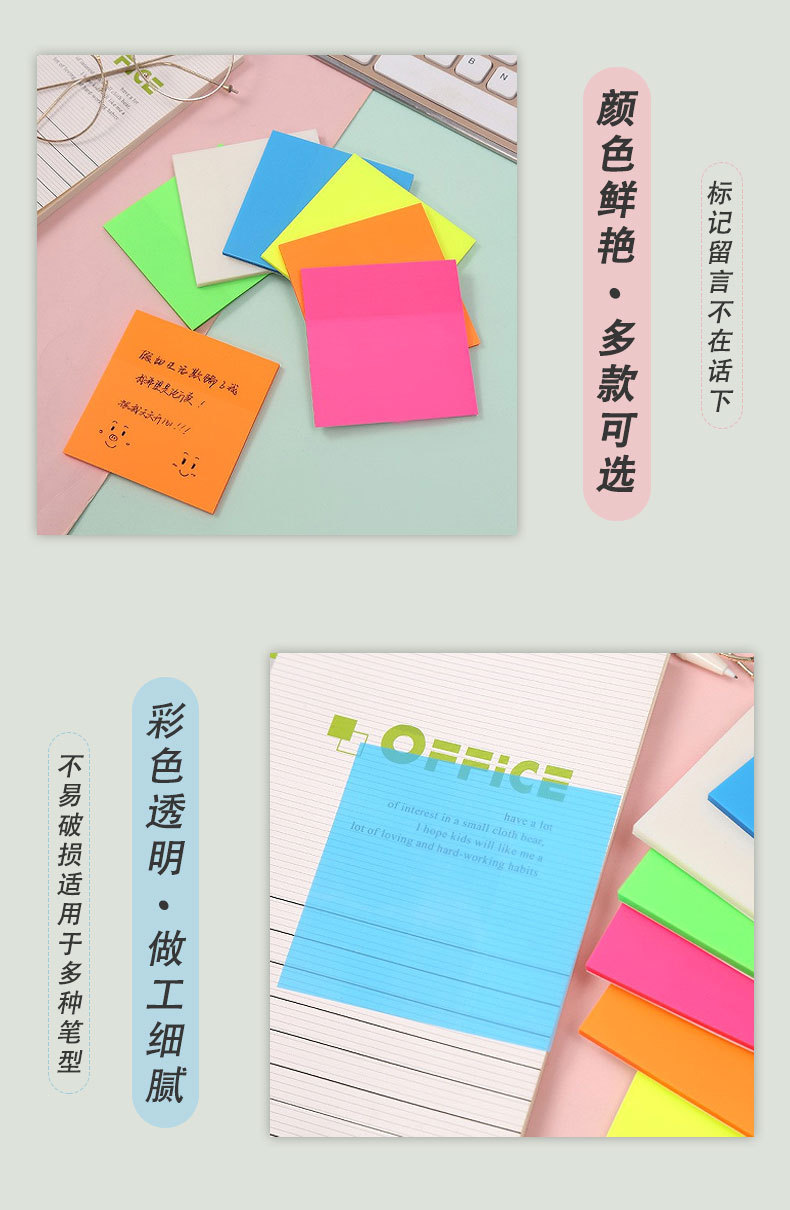 カラーn回貼りシンプル付箋紙付箋紙透明付箋卸売り粘着創意学生メモpet