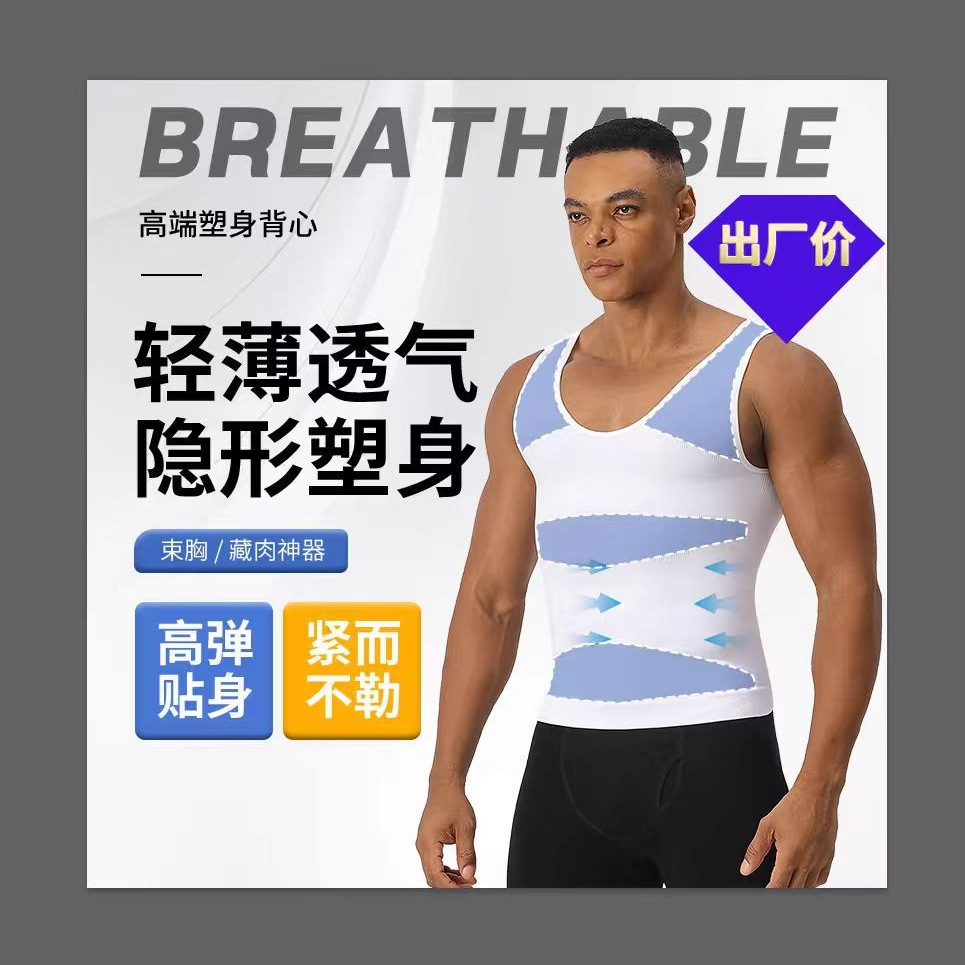 无缝款跨境男士塑身衣独特设计收腹束胸束身塑形藏肉运动背心BX09