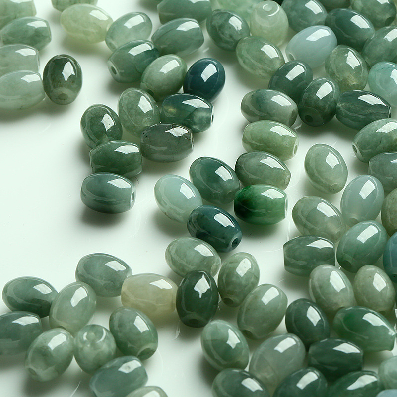 メーカー直販天然ミャンマーA品翡翠玉油青鼓珠散珠DIY米珠散件ネックレスブレスレット部品