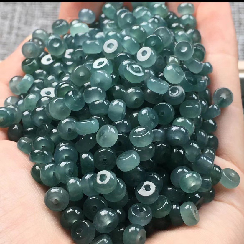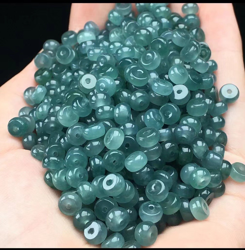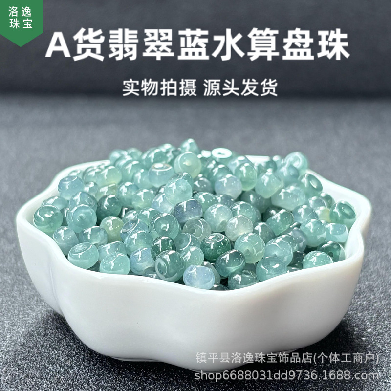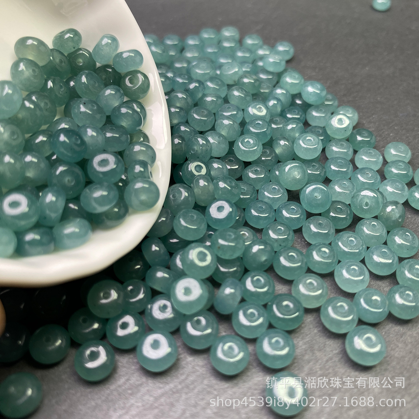 厂家批发冰种危料翡翠色蓝水算盘珠小扣子散珠扁珠diy手串配饰