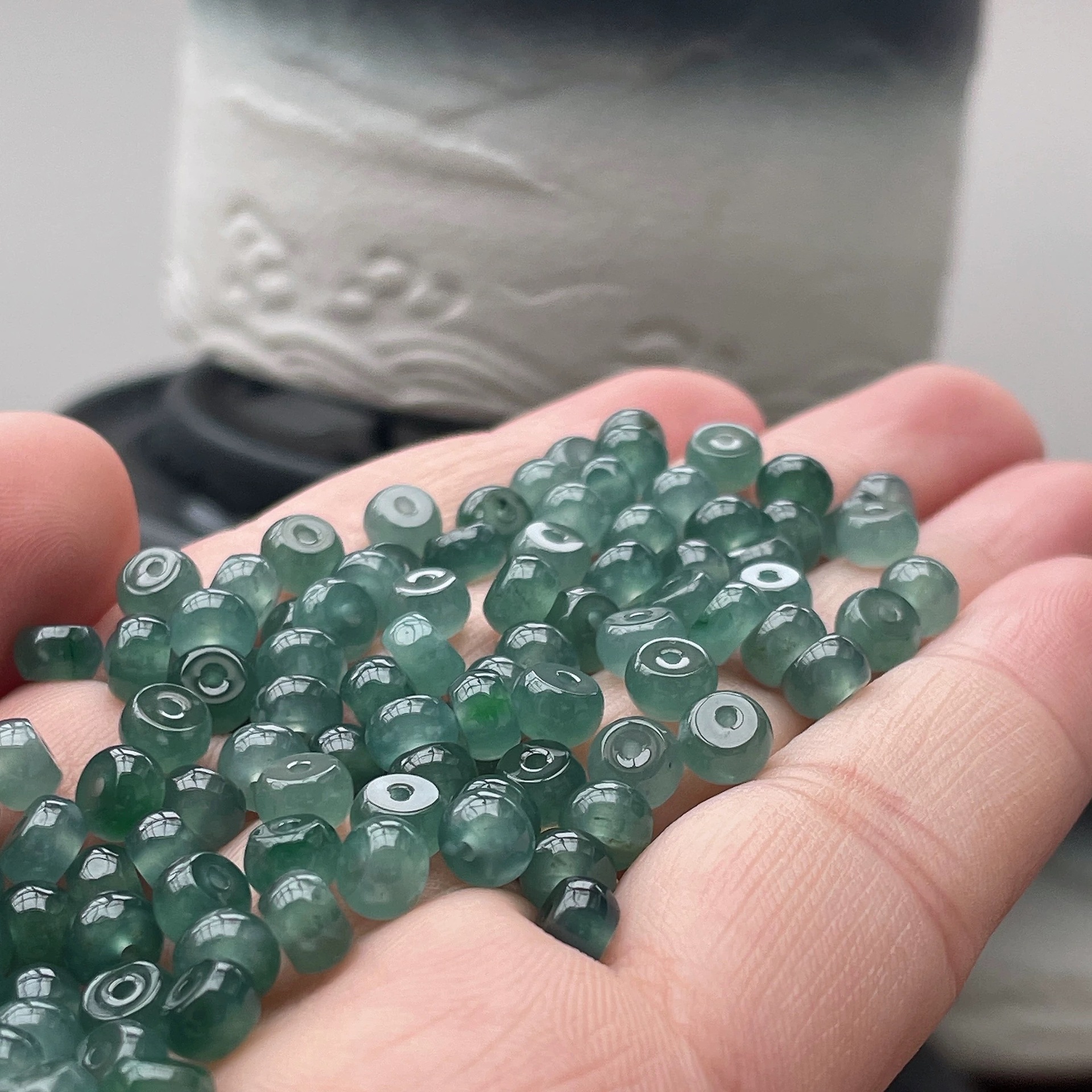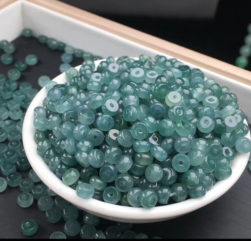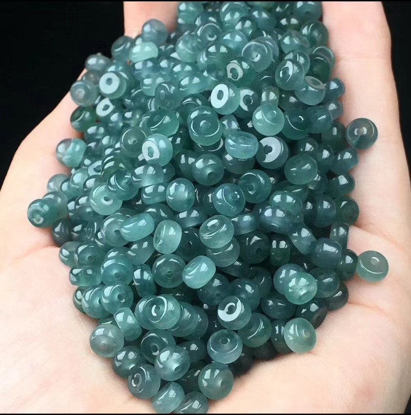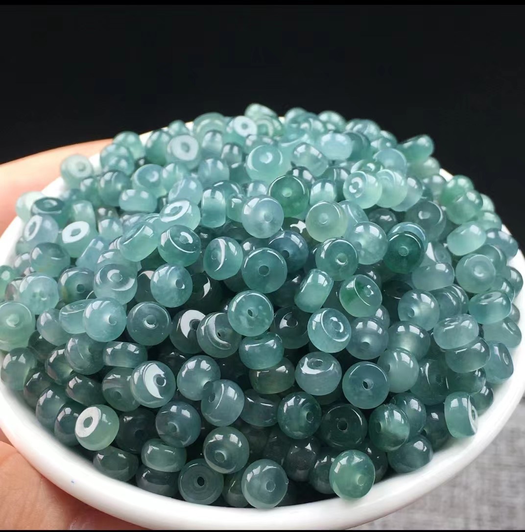 厂家批发冰种危料翡翠色蓝水算盘珠小扣子散珠扁珠diy手串配饰