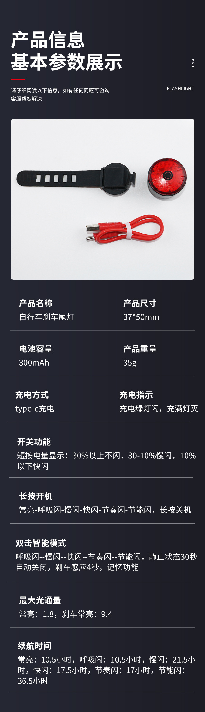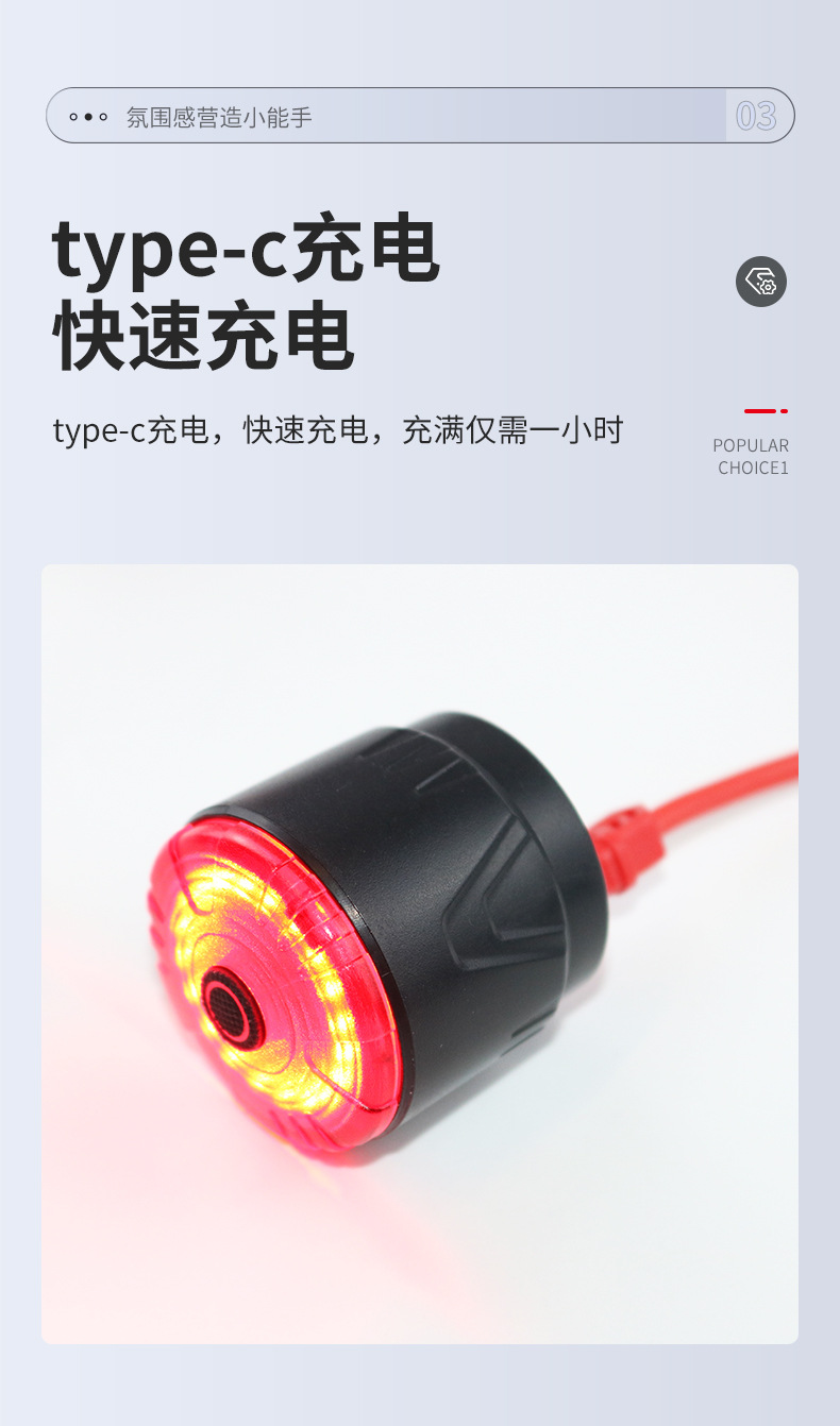 自転車のテールライトtype-c充電フラッシュミニ警告灯ハイライト屋外防水緊急灯