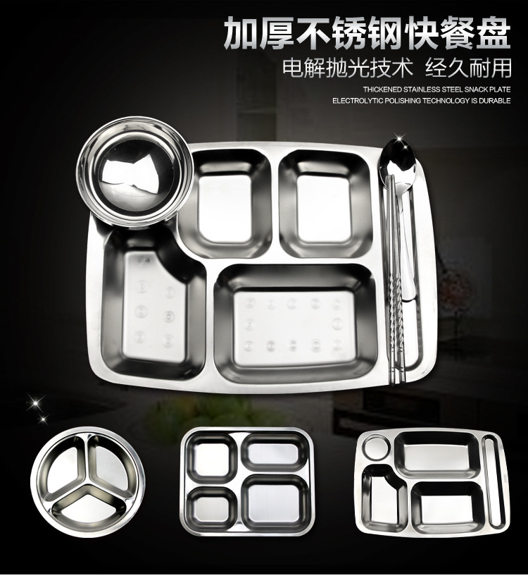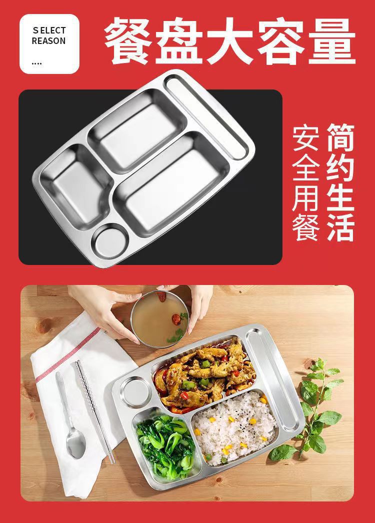 食事皿分格ステンレスファストフード皿成人児童幼稚園食堂分食皿弁当箱弁当皿家庭用