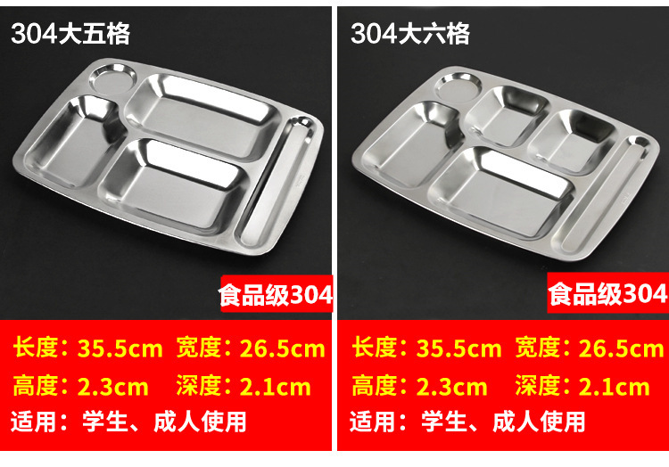 304ステンレスのファーストフードの5格の6格の成人の学生の食堂の各格の食事の皿の幼稚園はファーストフードの皿を深めます。