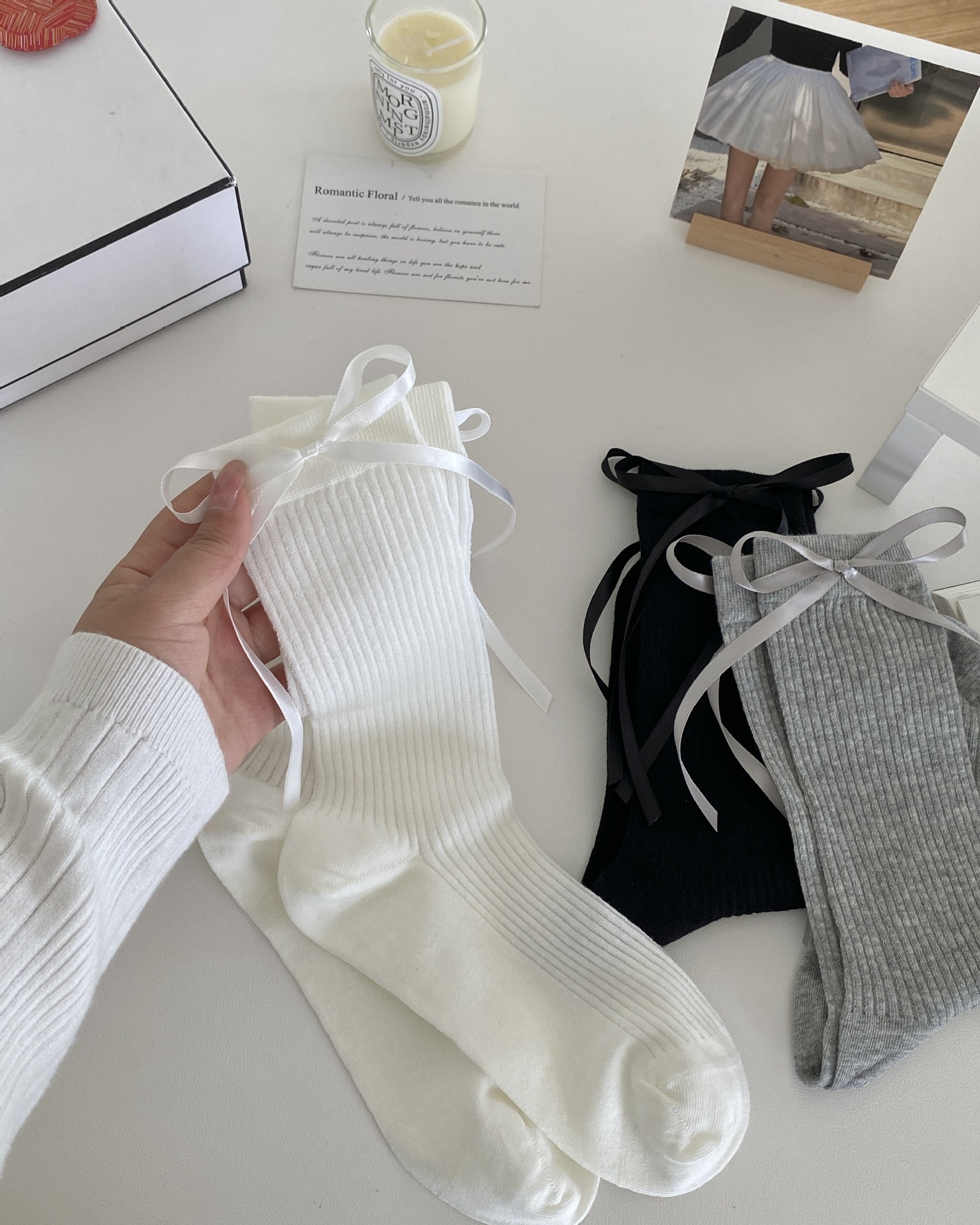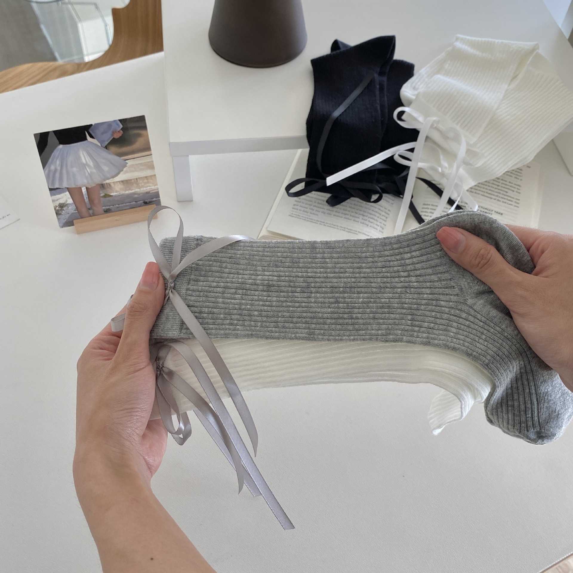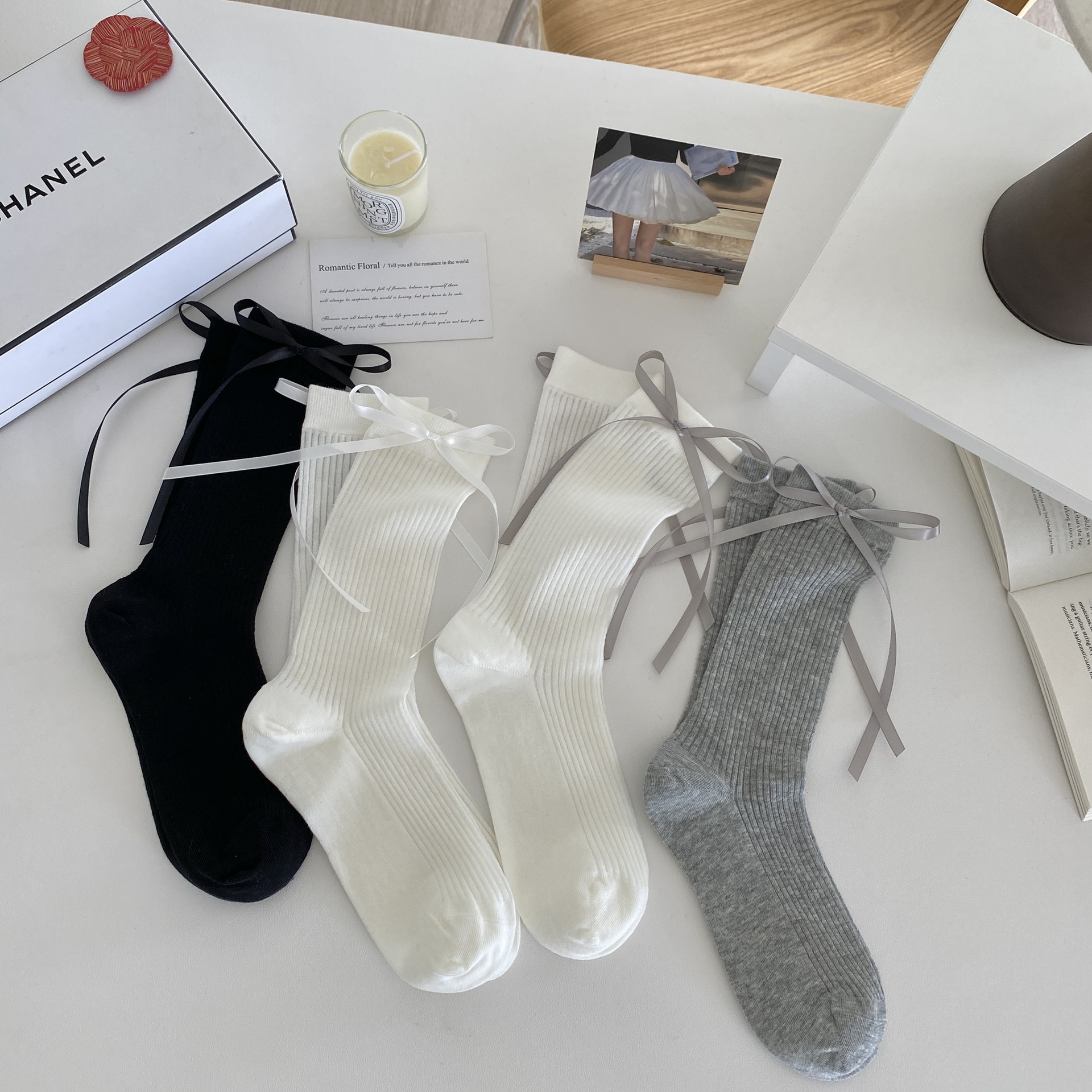 韓国風インスタトレンドのロングソックス、蝶結び付きのシンプルで可愛い女子高生風ロングソックス卸売