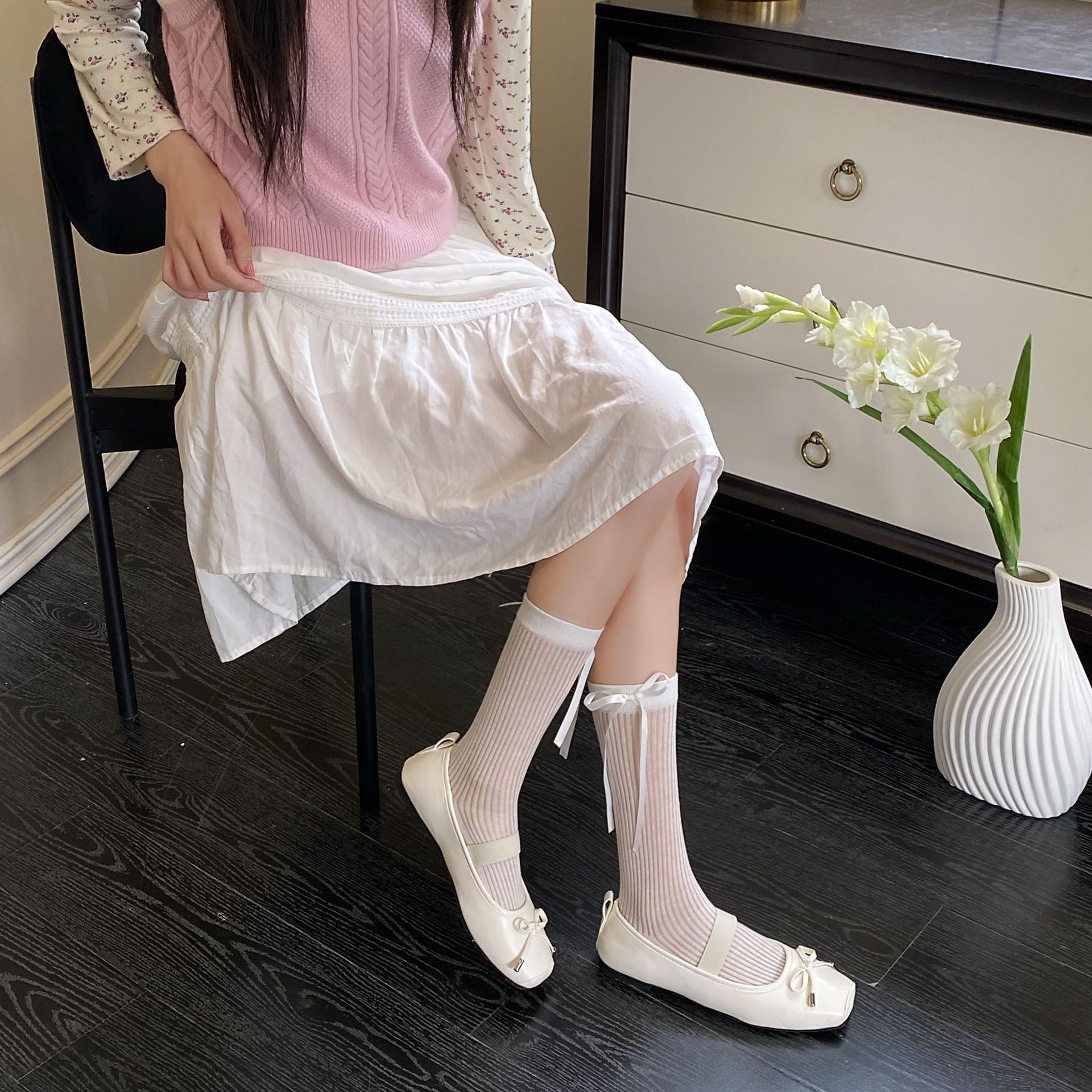25 新款芭蕾风透气袜子女韩系绑带蝴蝶结中筒袜春夏季配裙子jk袜