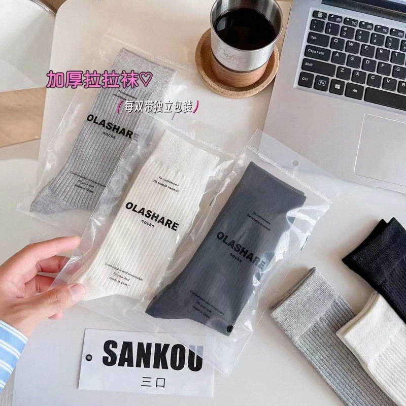 諸暨製二重編みソックス レディース 韓国風 インス風 トレンド ララソックス 無地 シンプル 通気性 ミドル丈 パイルソックス 卸売