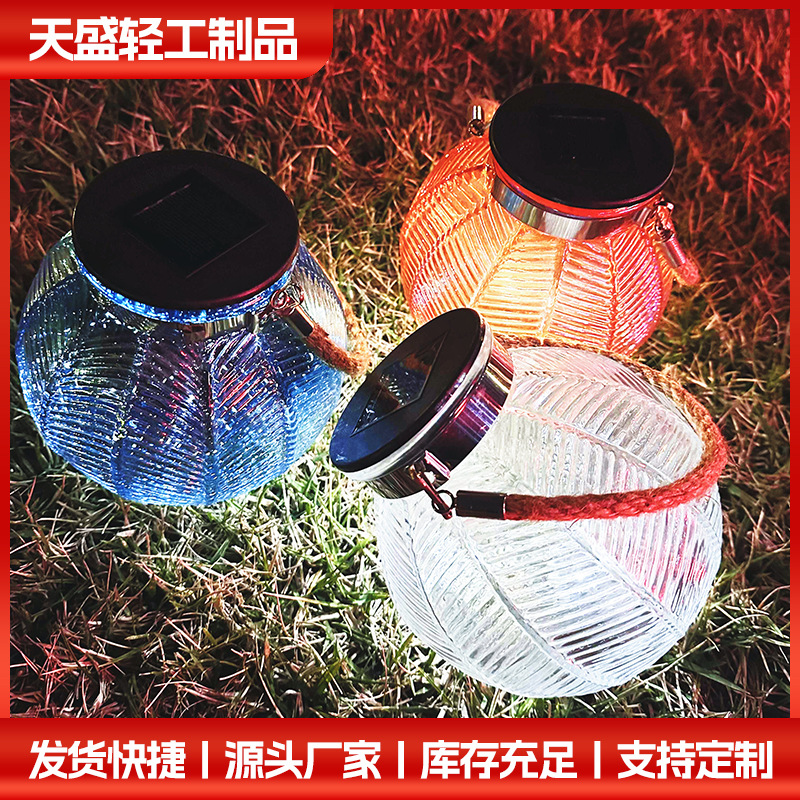 人気のソーラーホワイトストライプガラス瓶中庭屋外装飾雰囲気ライトLED