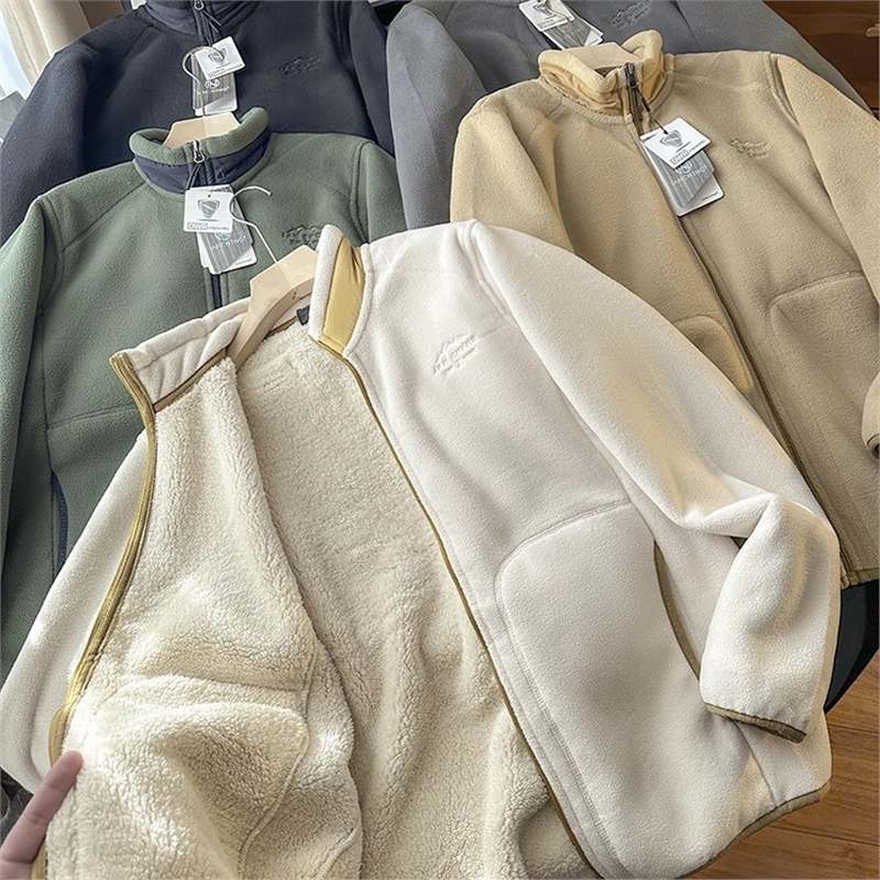 走岛国299欧 日单情侣百搭加绒加厚保暖摇粒绒羊羔绒立领夹克外套