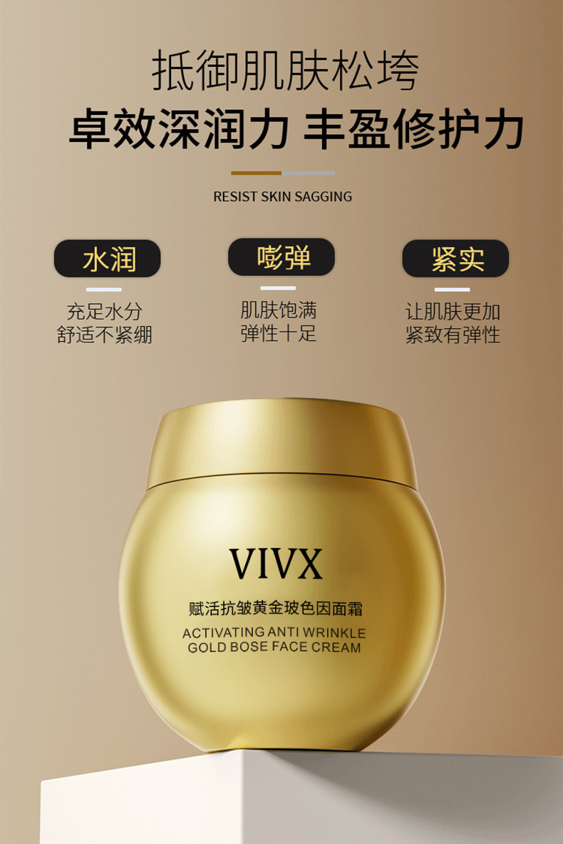 起爆vivxは抗シワ黄金のガラス色を活性化して、クリームで潤いを与えて水を補給します。
