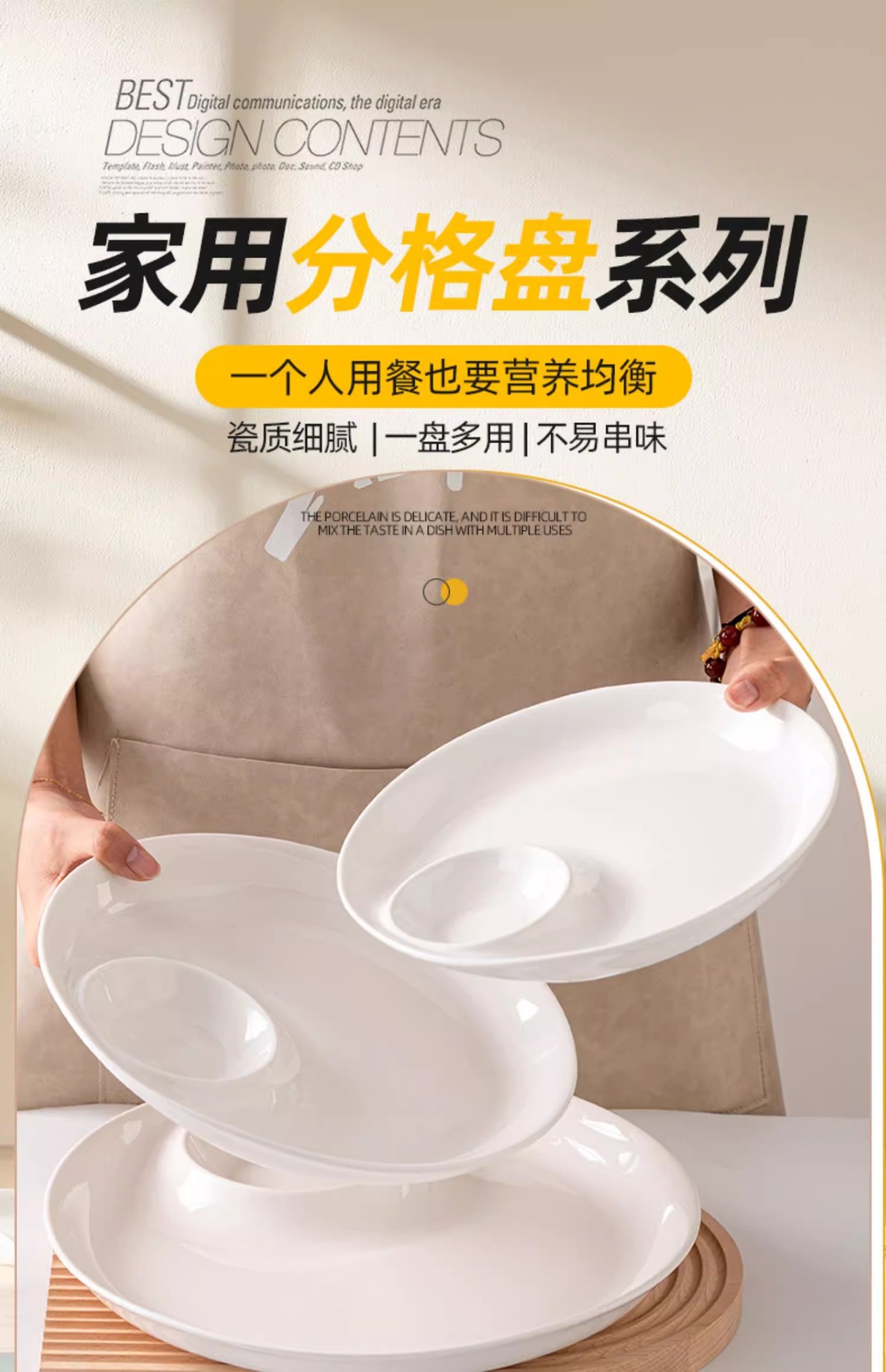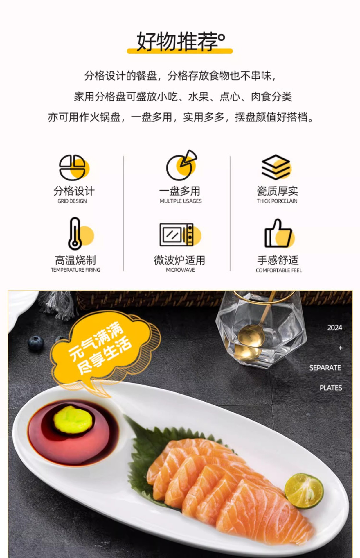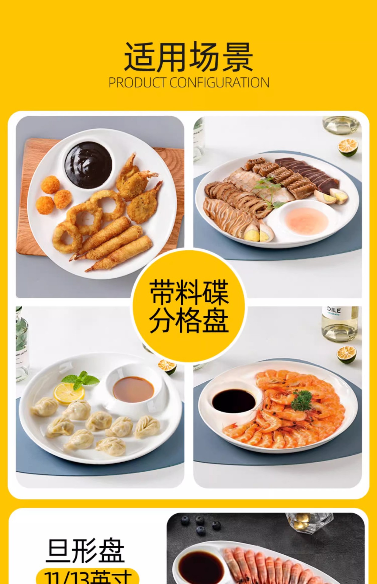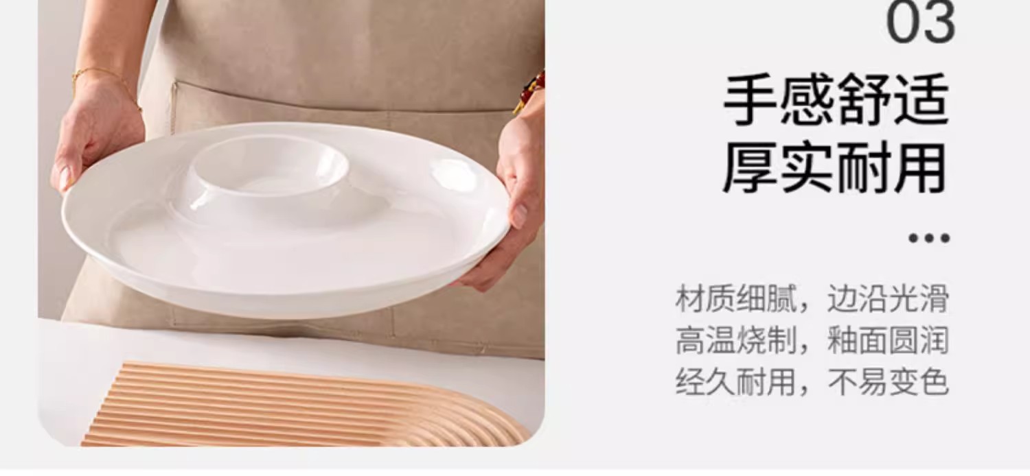 陶瓷盘子菜盘家用虾盘饺子盘分格子母盘带醋碟纯白寿司盘大号圆盘