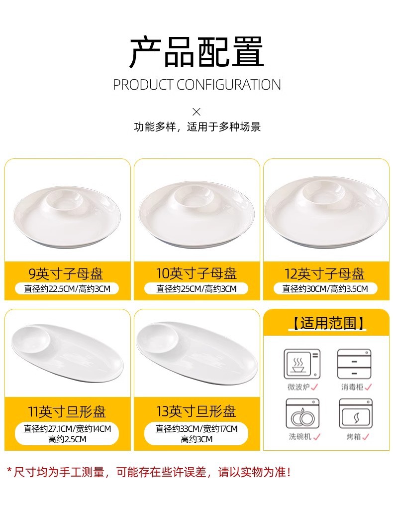 カラー 9インチ円形子母皿,10インチ円形子母皿,12インチ円形子母皿,11インチ旦形子マザーディスク,13インチ旦形子マザーディスク,10インチ五果皿,12インチ五果皿,14インチ五果皿