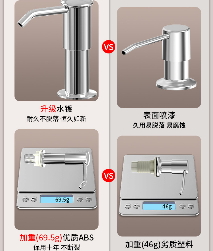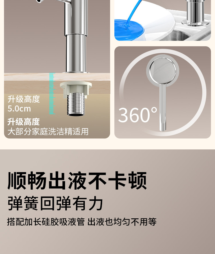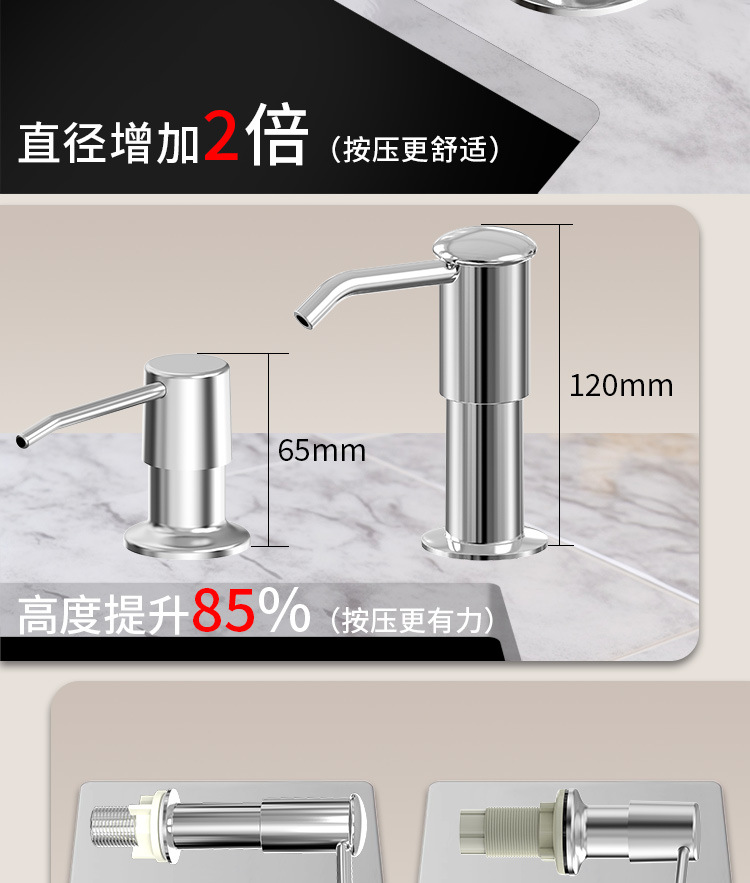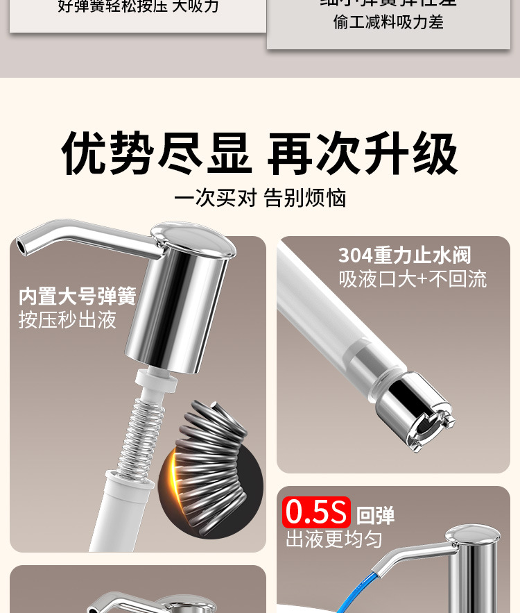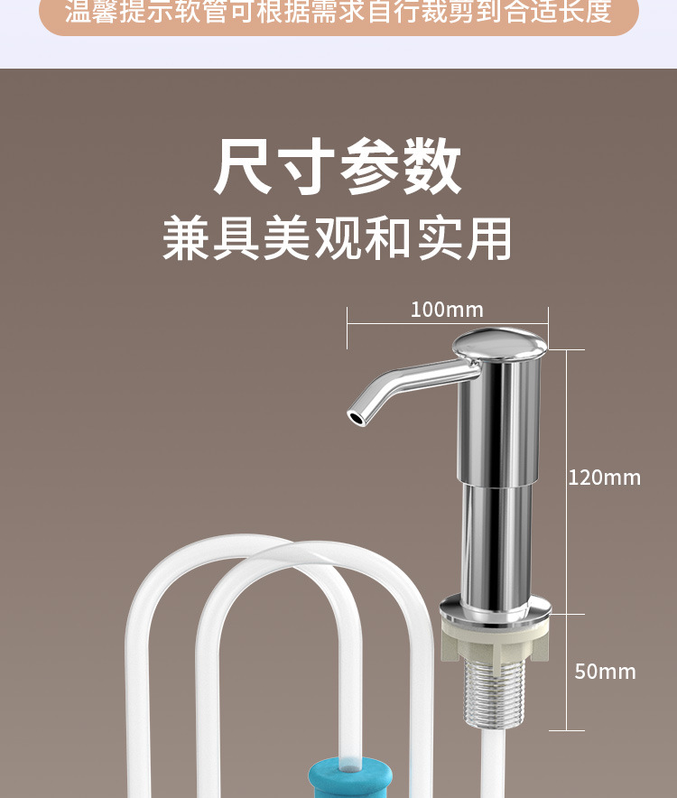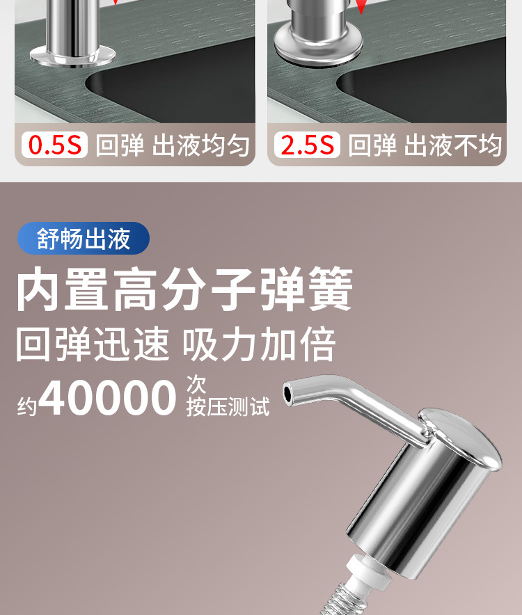 石鹸ディスペンサー304ステンレスシリコン加长管キッチン石鹸ディスペンサーポンプヘッド延长洗浄シンクプレス