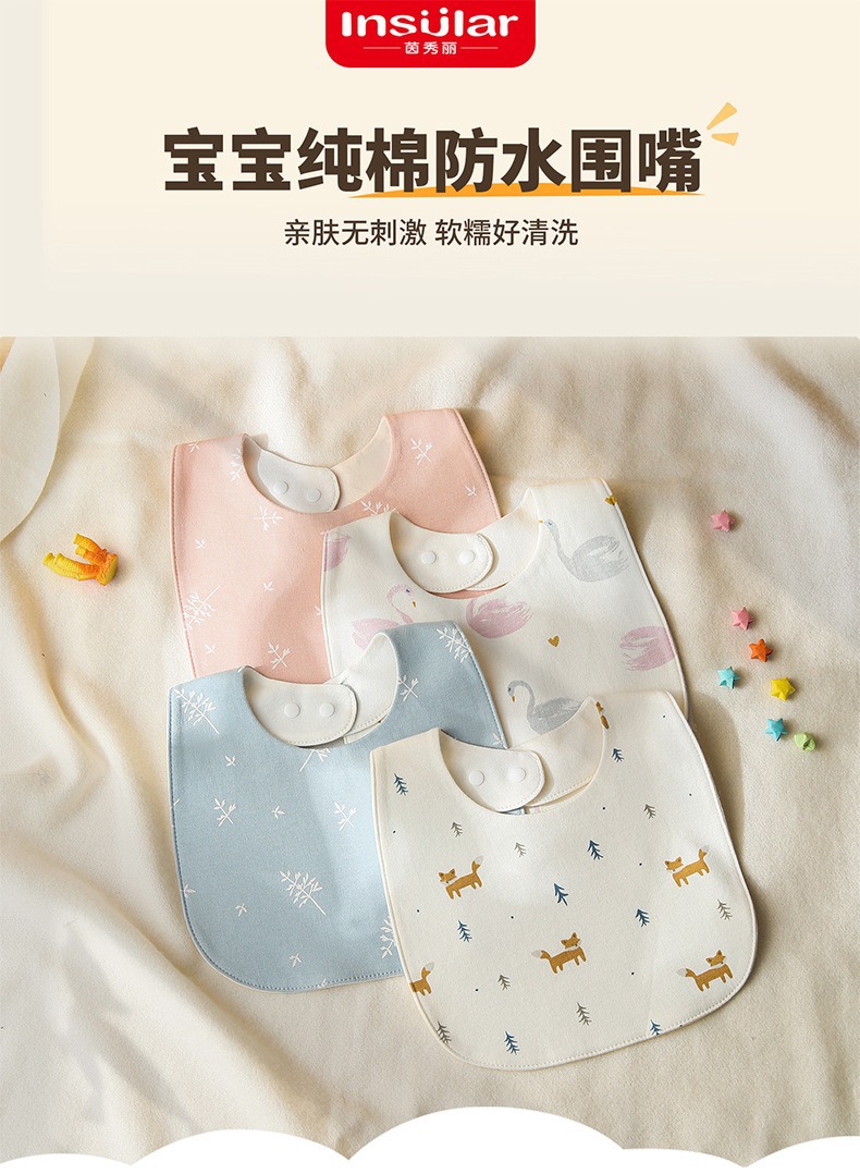 婴儿U型围嘴围兜A类宝宝吃饭围兜纯棉防水防污口水巾双层吸水饭兜