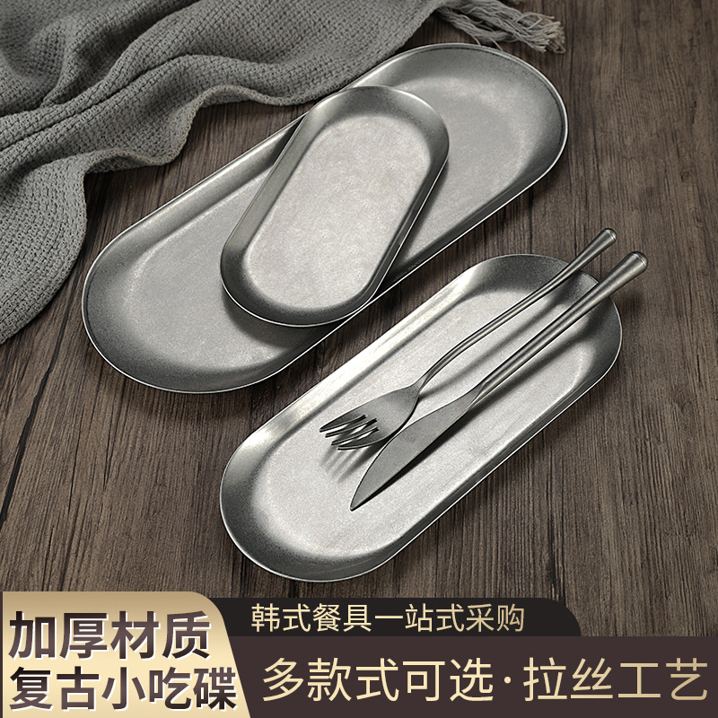 レトロ風ステンレス楕円盤和風アクセサリートレイins創意レストランスイーツケーキ皿タオル皿