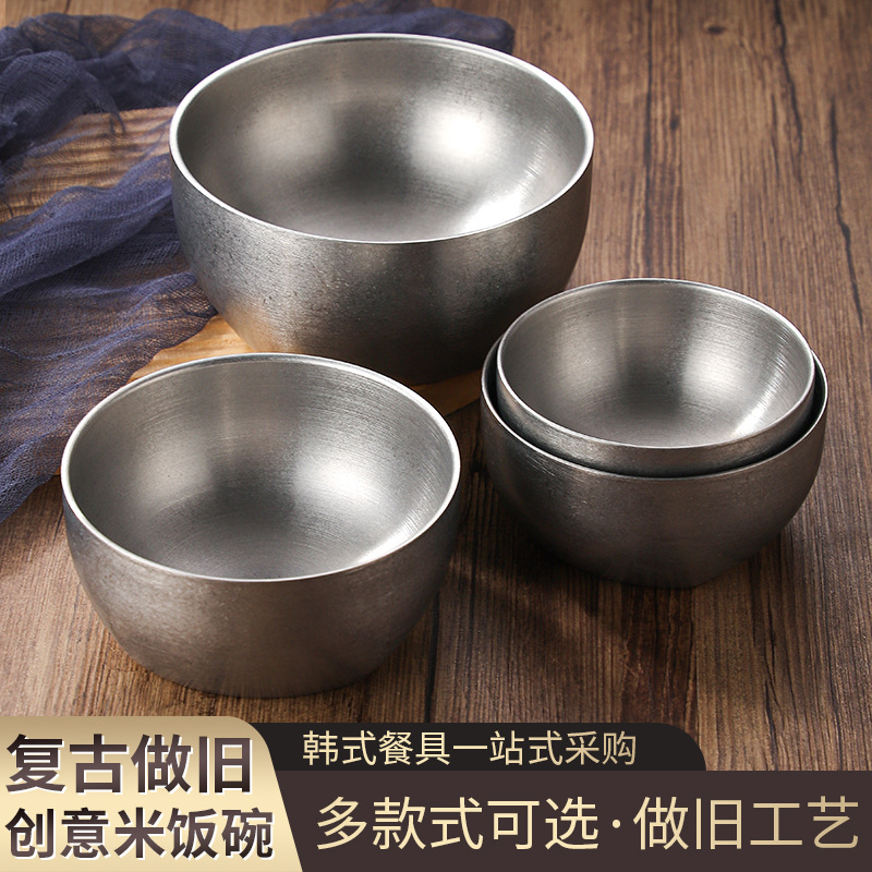 レトロ304ステンレスご飯碗二重スープ碗は古い食器を作ります。