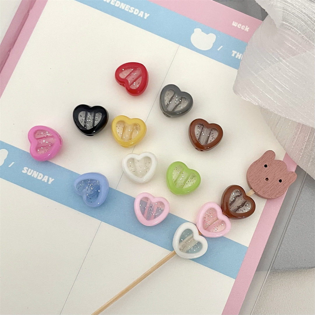 亚克力双色小桃心爱心珠直孔充粉散珠DIY手机链饰品串珠配件批发