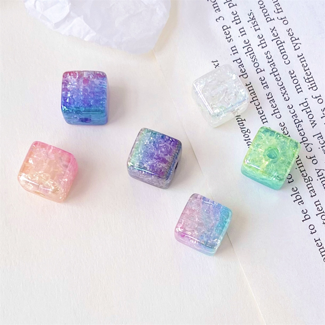 陳明のアクリルのまっすぐな穴の四角のグラデーションの四角形の玉のまぶしい色の爆裂の玉のdiyの鍵の数珠の部品は卸売りします。