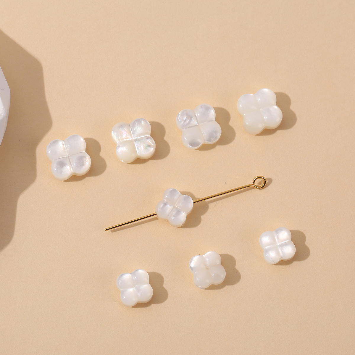 天然貝殻白蝶貝老魚骨通孔四葉草散珠diy手作業彫刻古風ヘアピン材料