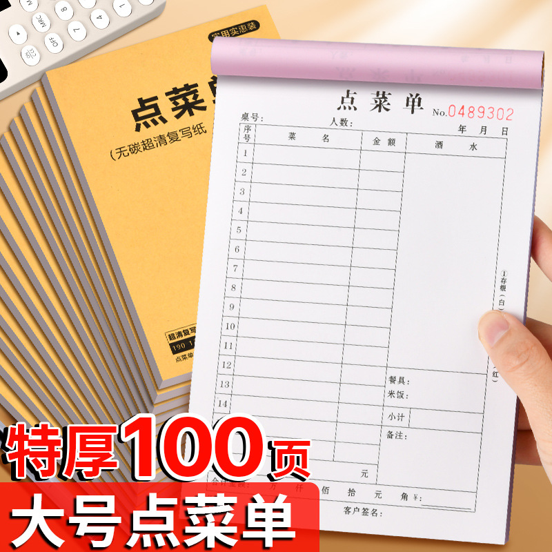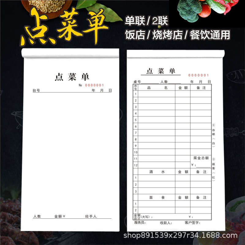 点菜单三联酒水单加菜单饭店餐馆手写菜单本单据